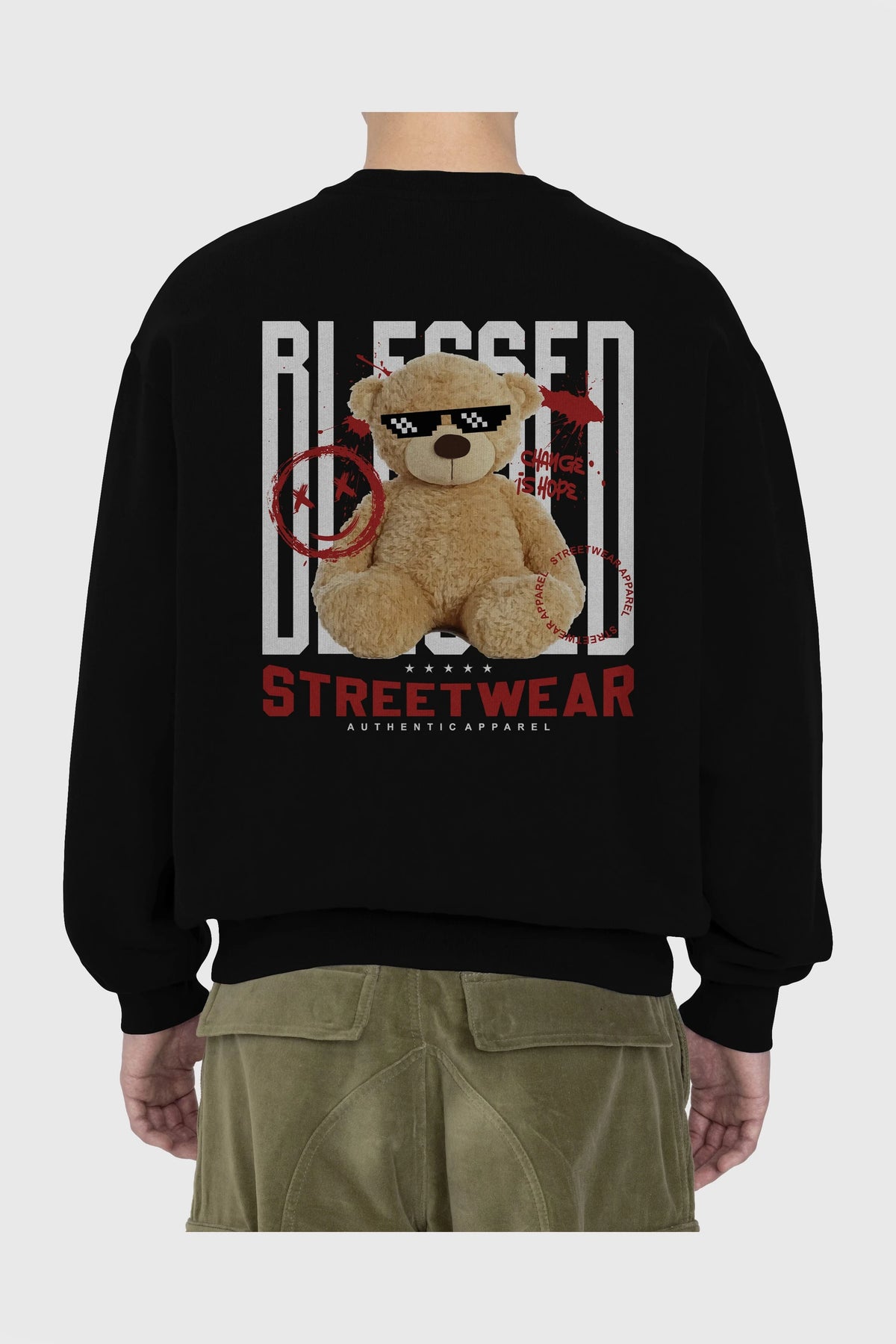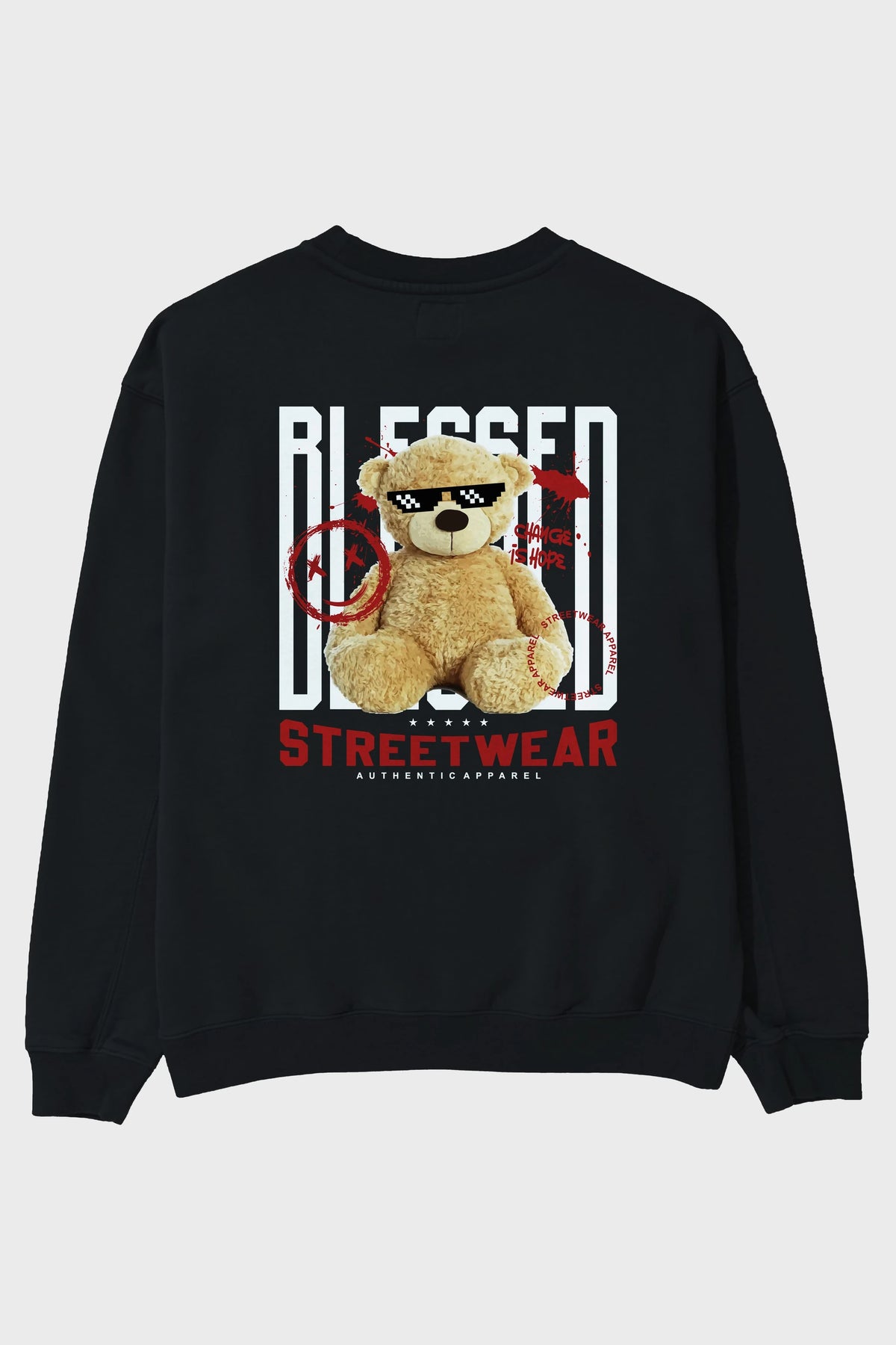 Blessed Bear Arka Baskılı Oversize Sweatshirt Erkek Kadın Unisex