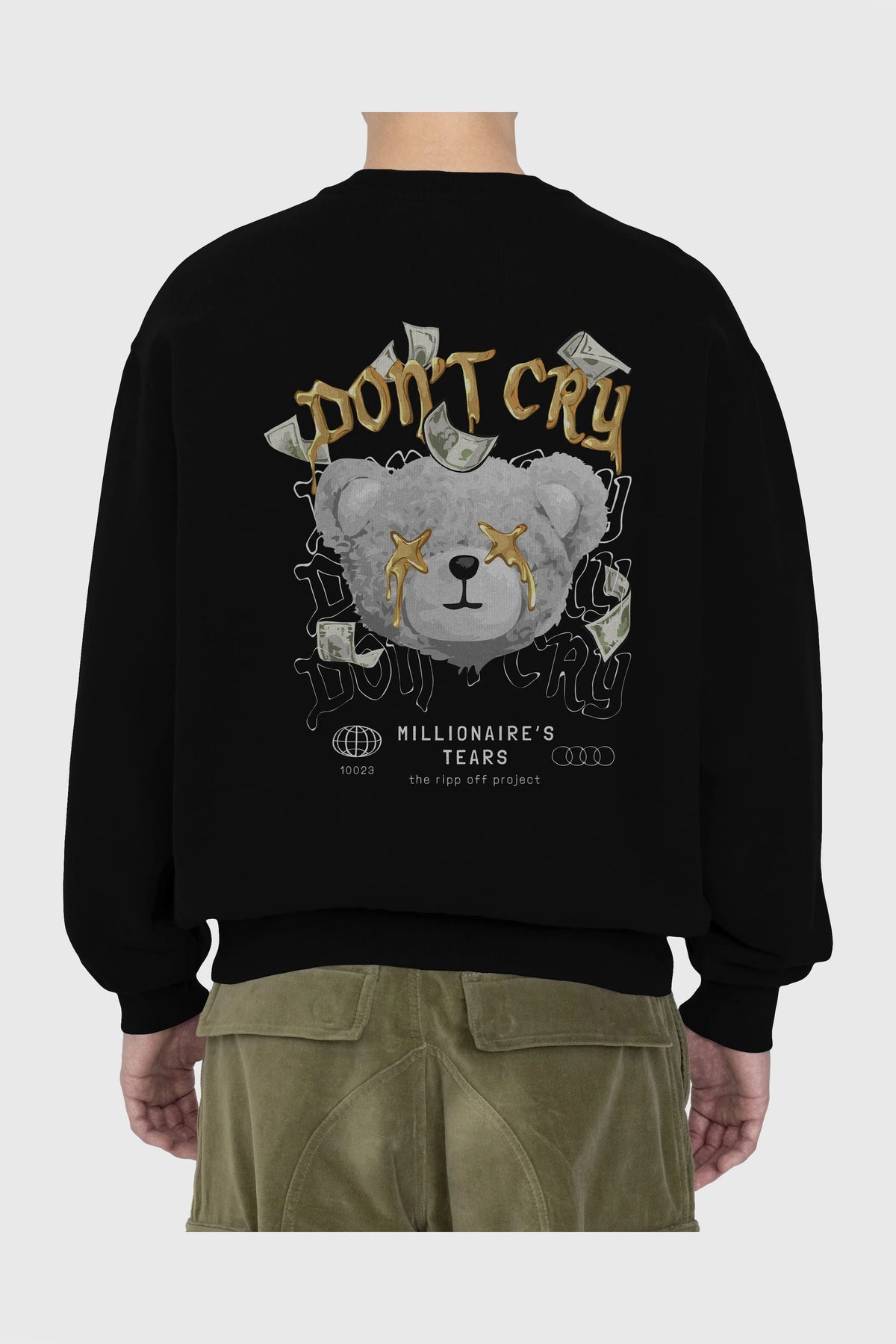 Dont Cry Bear Arka Baskılı Oversize Sweatshirt Erkek Kadın Unisex