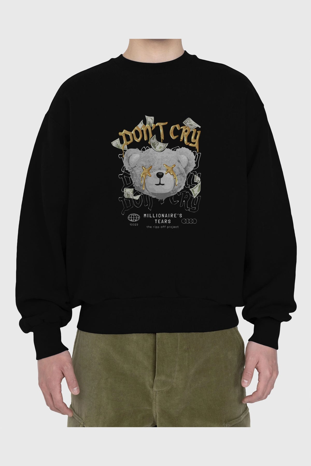 Dont Cry Bear Ön Baskılı Oversize Sweatshirt Erkek Kadın Unisex