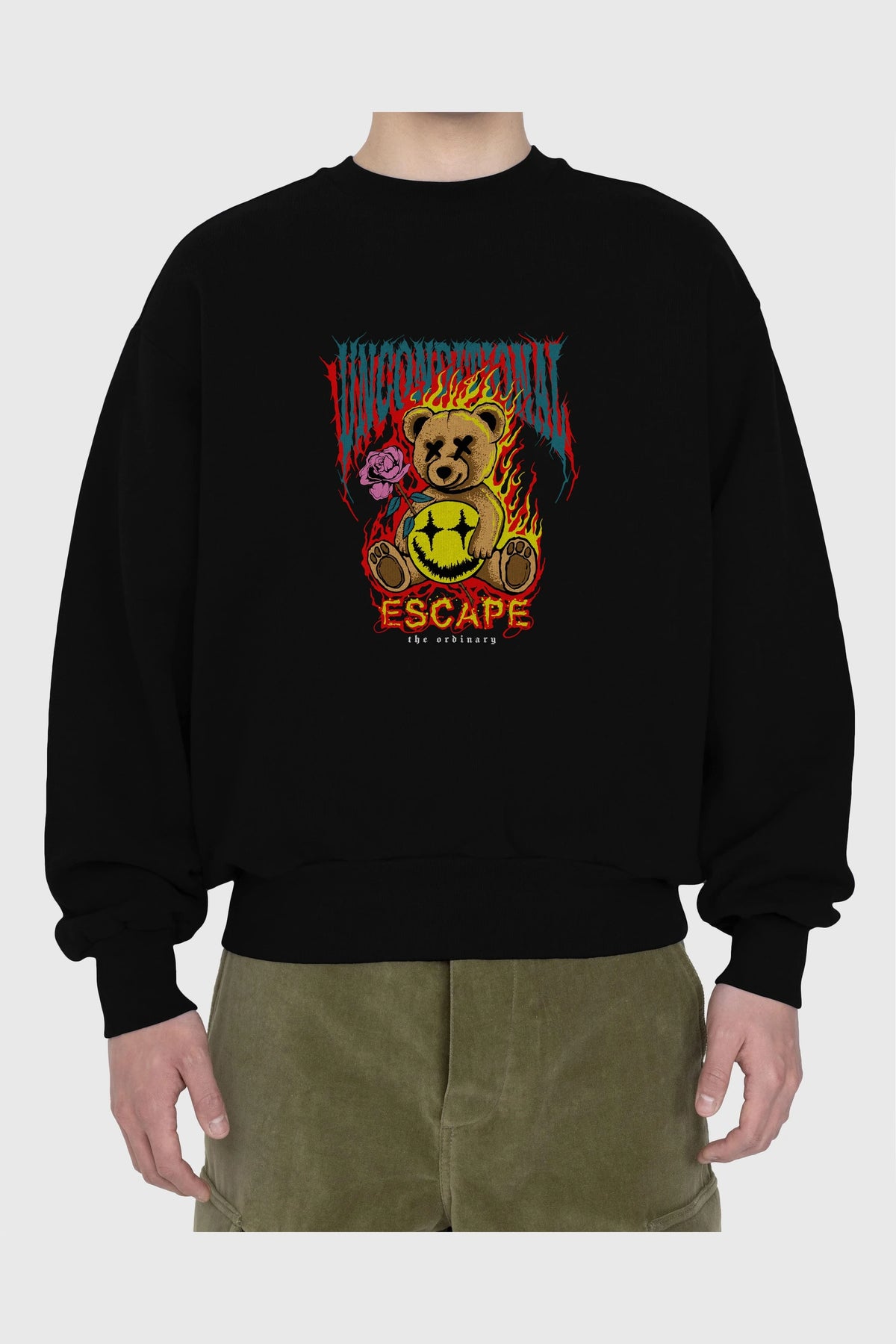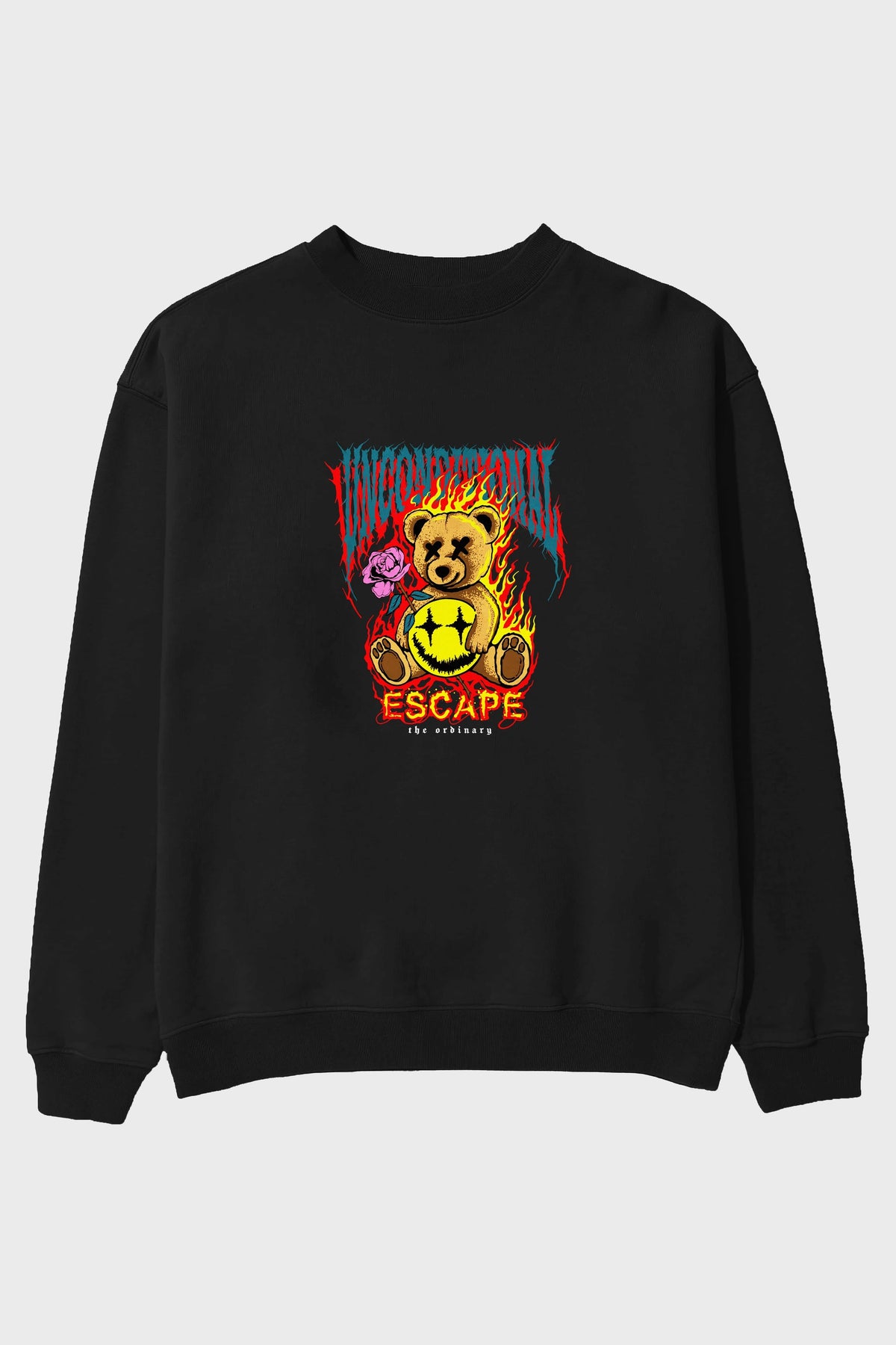 Escape Bear Ön Baskılı Oversize Sweatshirt Erkek Kadın Unisex