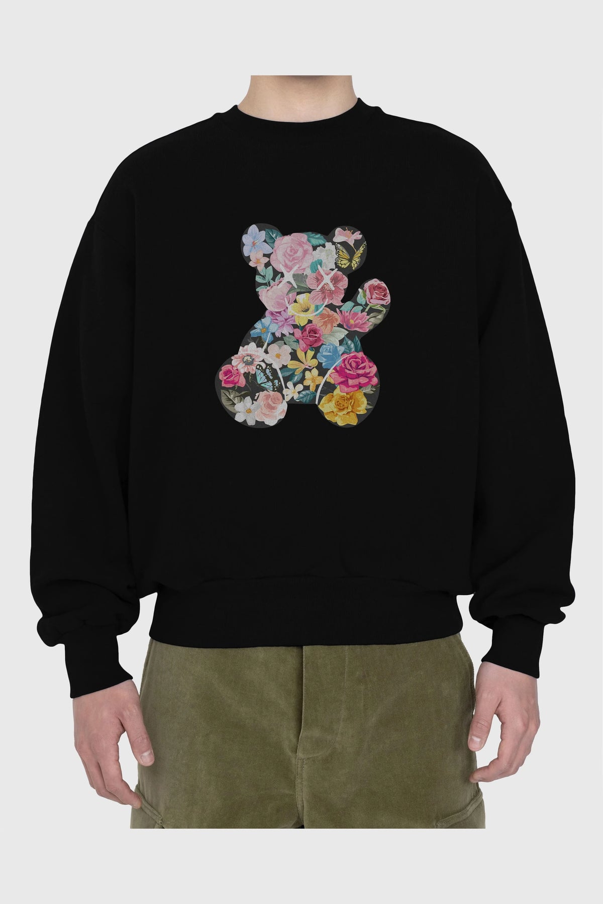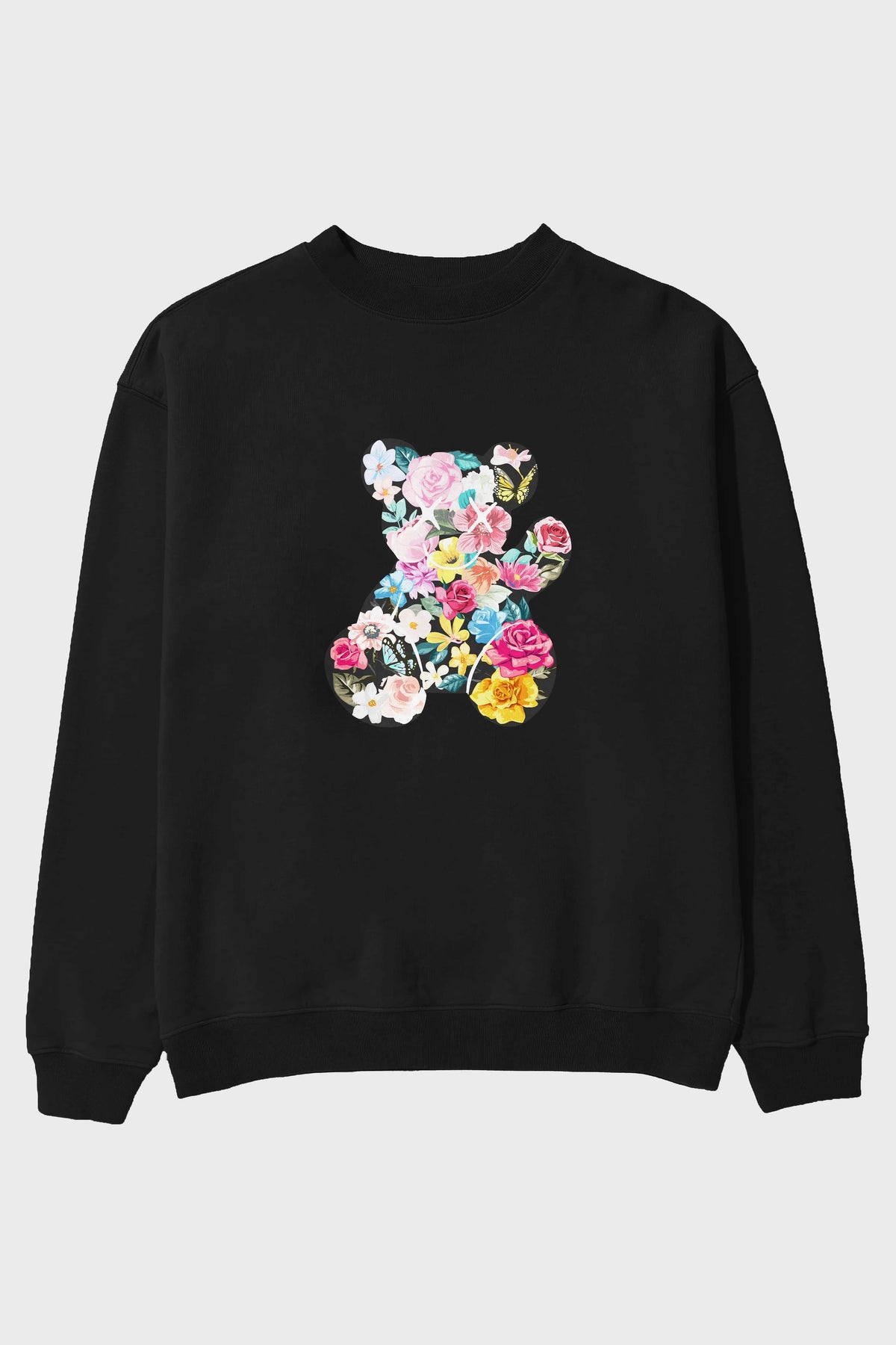 Flowers Bear Ön Baskılı Oversize Sweatshirt Erkek Kadın Unisex