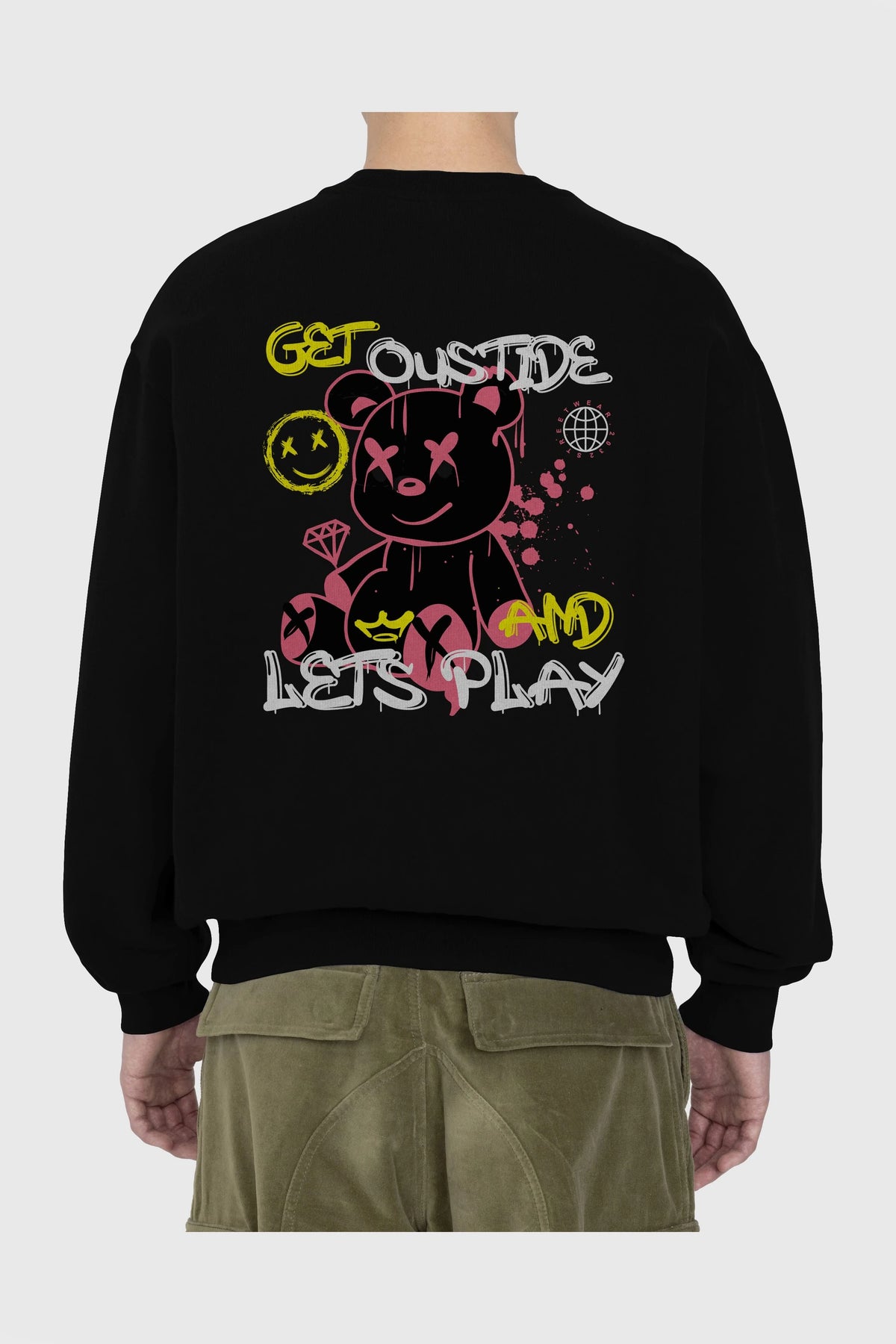 Get Outside Bear Arka Baskılı Oversize Sweatshirt Erkek Kadın Unisex