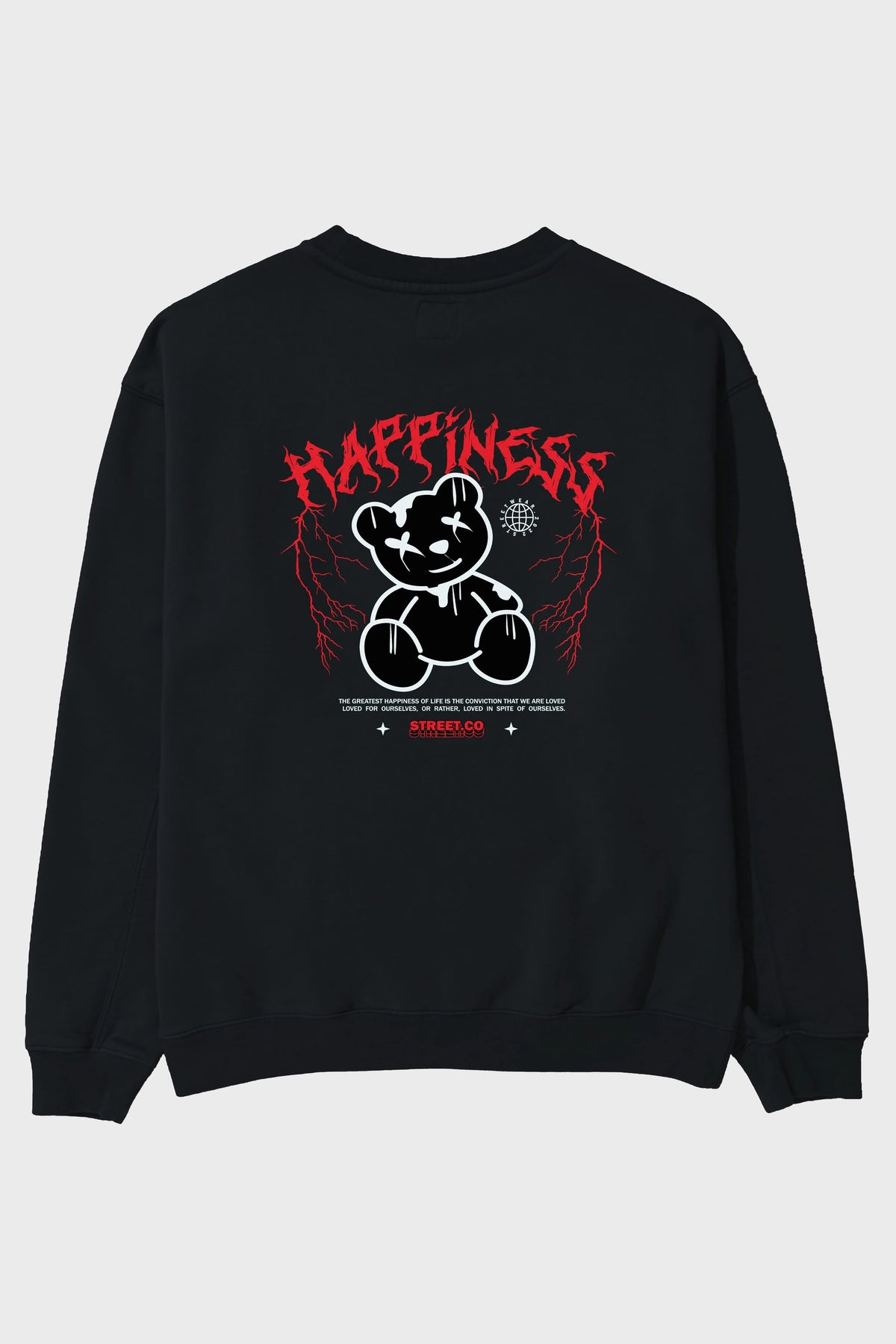 Happiness Bear Arka Baskılı Oversize Sweatshirt Erkek Kadın Unisex