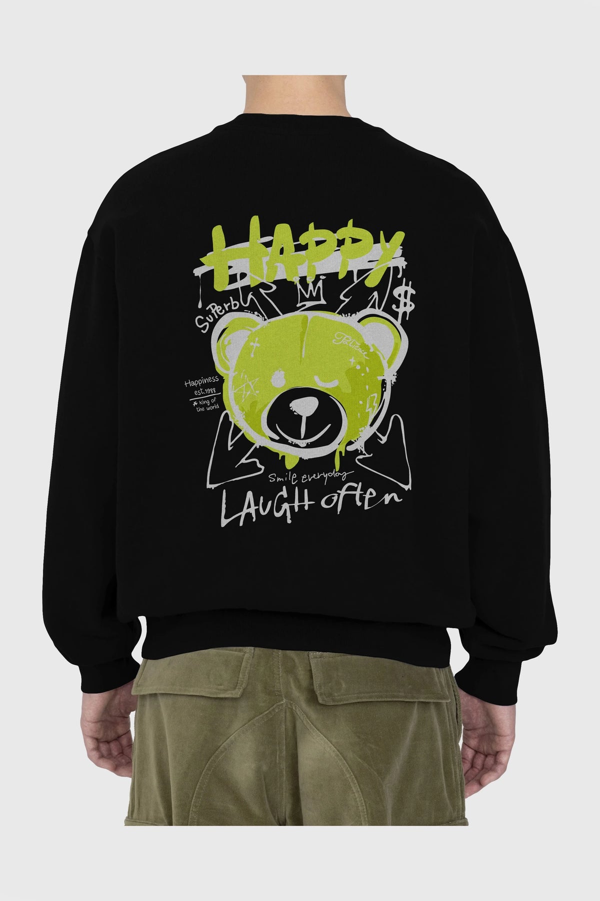 Happy Bear Arka Baskılı Oversize Sweatshirt Erkek Kadın Unisex