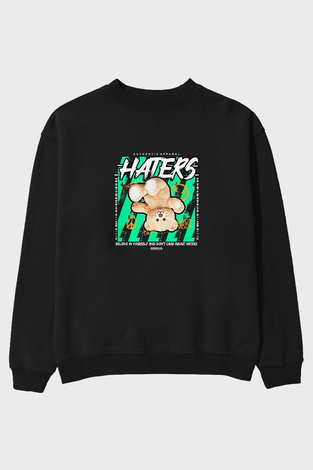 Haters Bear Ön Baskılı Oversize Sweatshirt Erkek Kadın Unisex