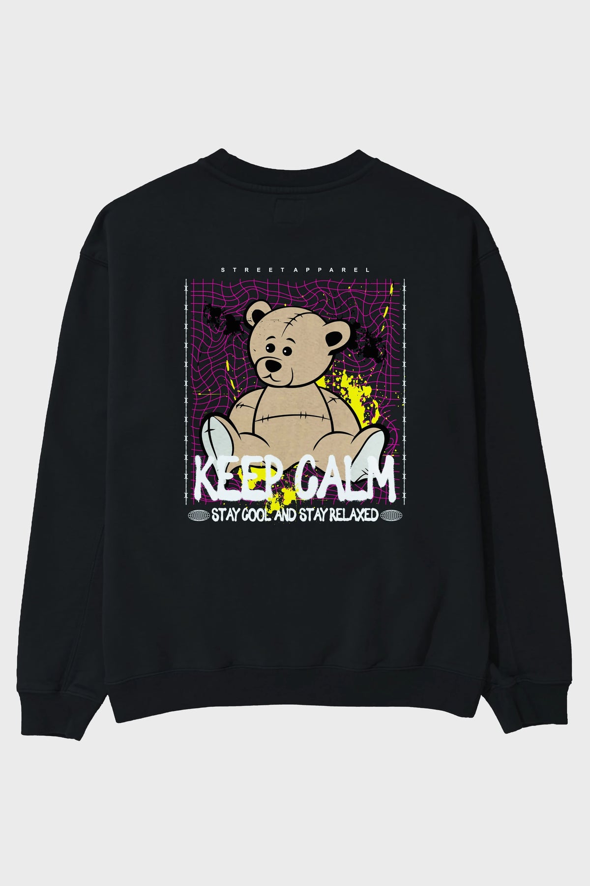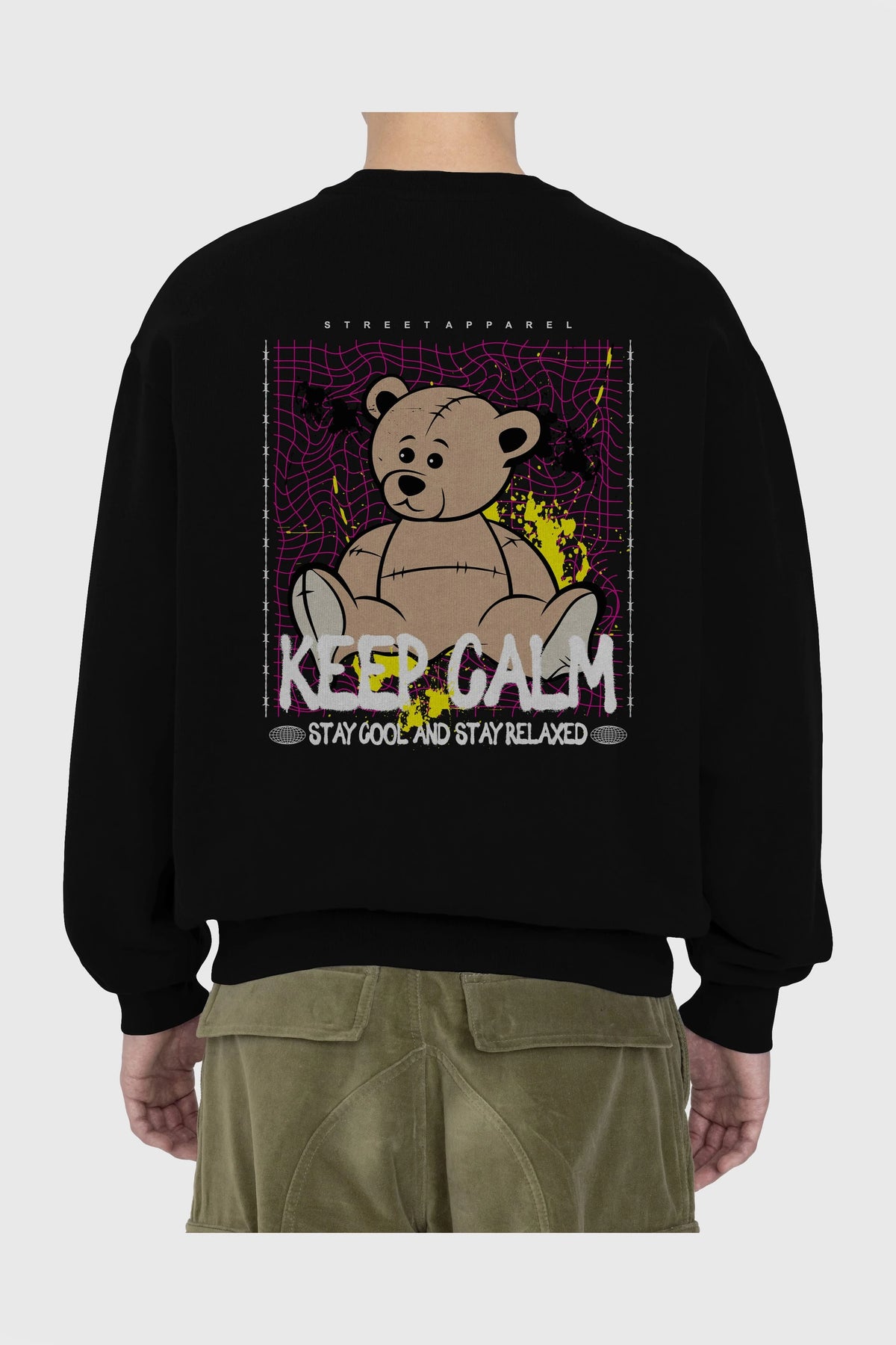 Keep Calm Bear Arka Baskılı Oversize Sweatshirt Erkek Kadın Unisex