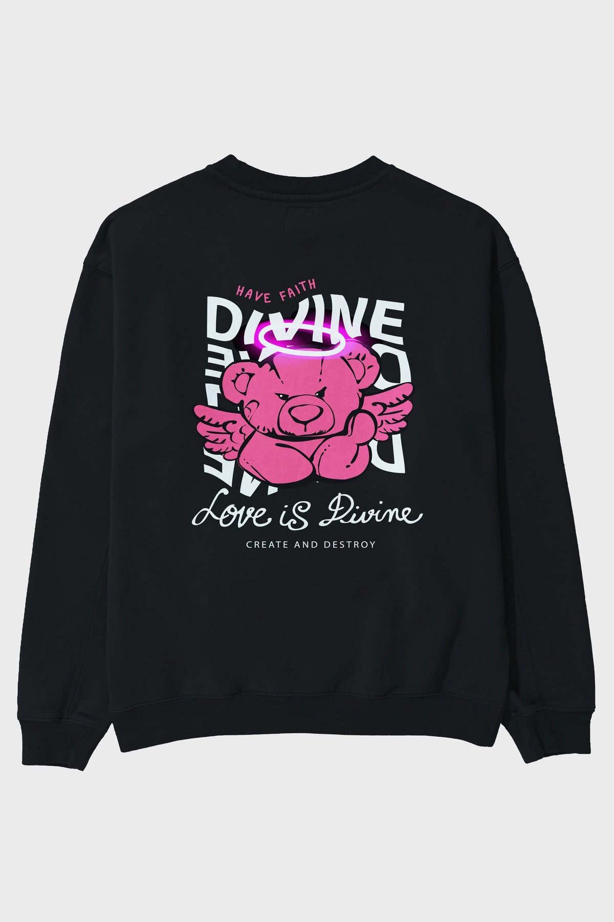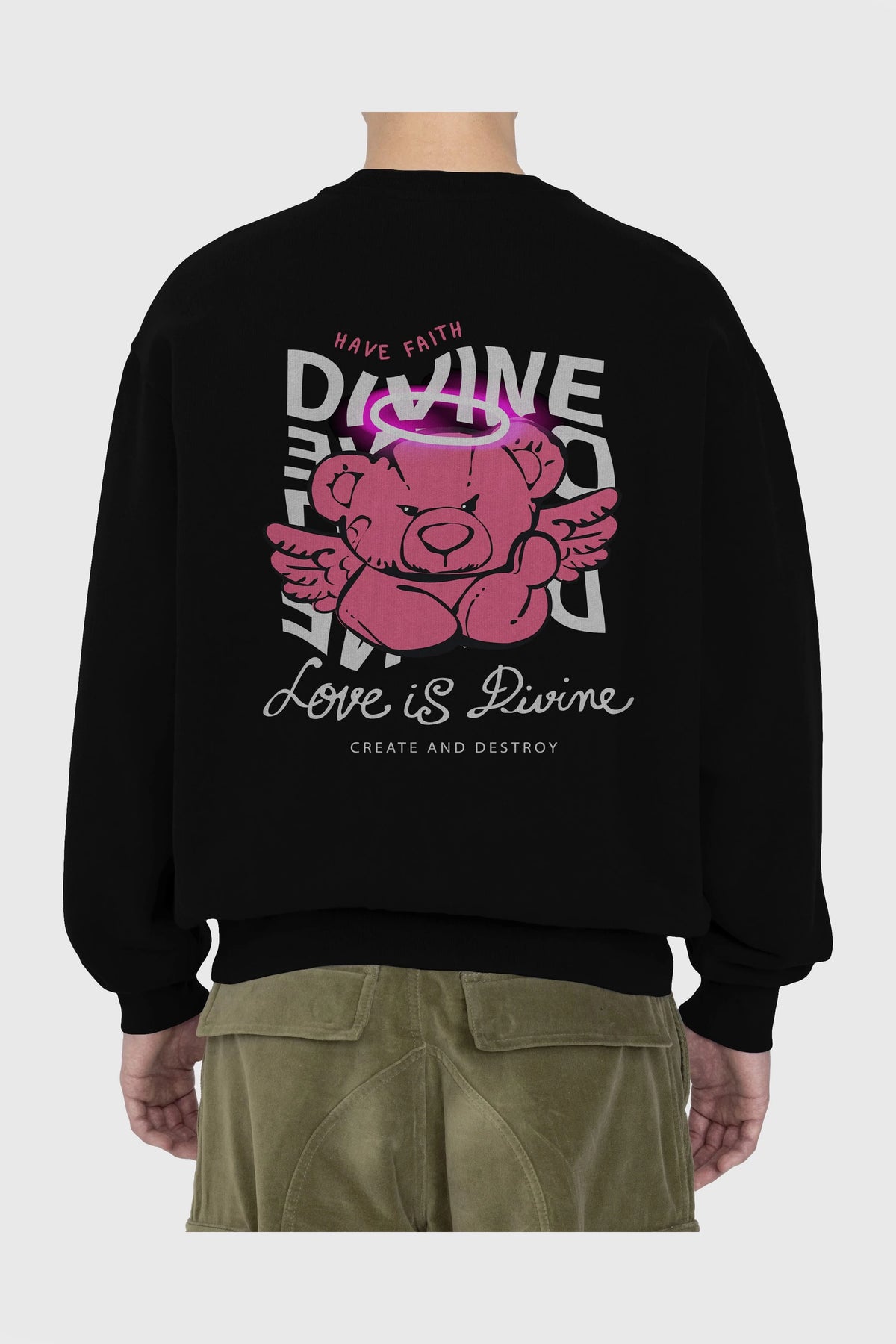 Love is Divine Bear Arka Baskılı Oversize Sweatshirt Erkek Kadın Unisex