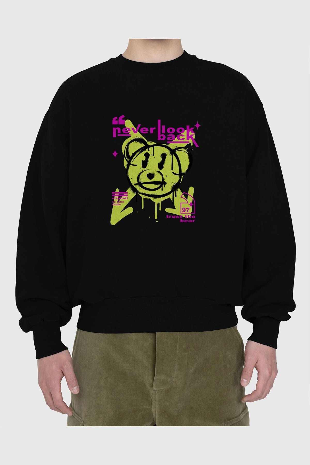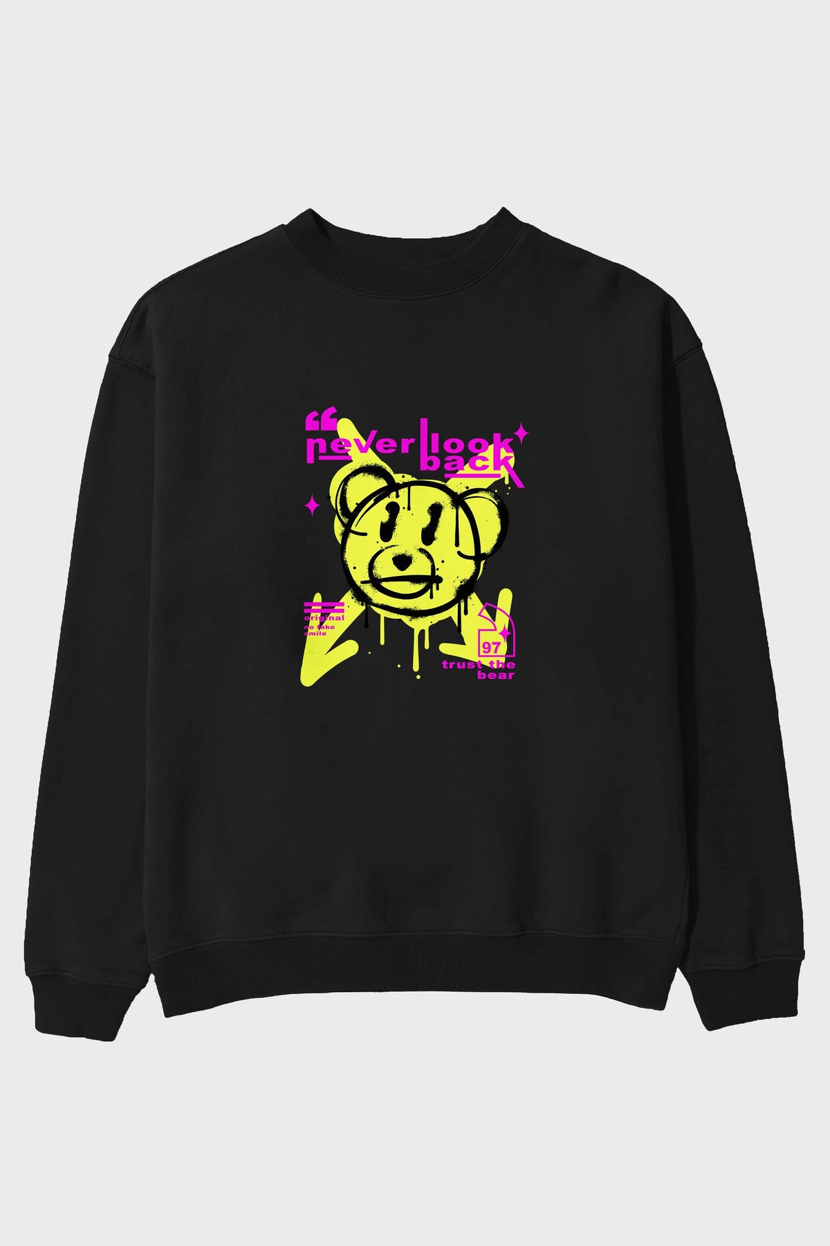 Never Look Back Bear Ön Baskılı Oversize Sweatshirt Erkek Kadın Unisex