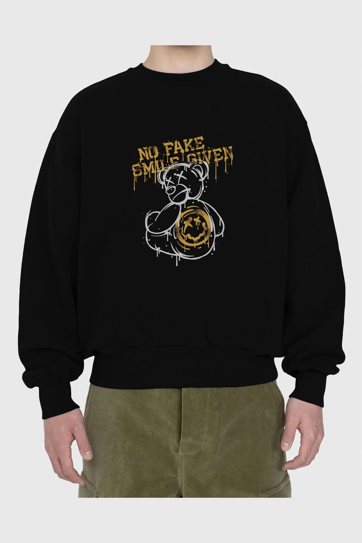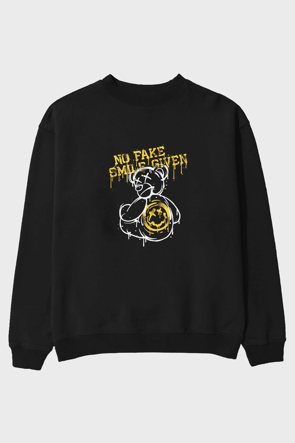 No Fake Smile Given Bear Ön Baskılı Oversize Sweatshirt Erkek Kadın Unisex