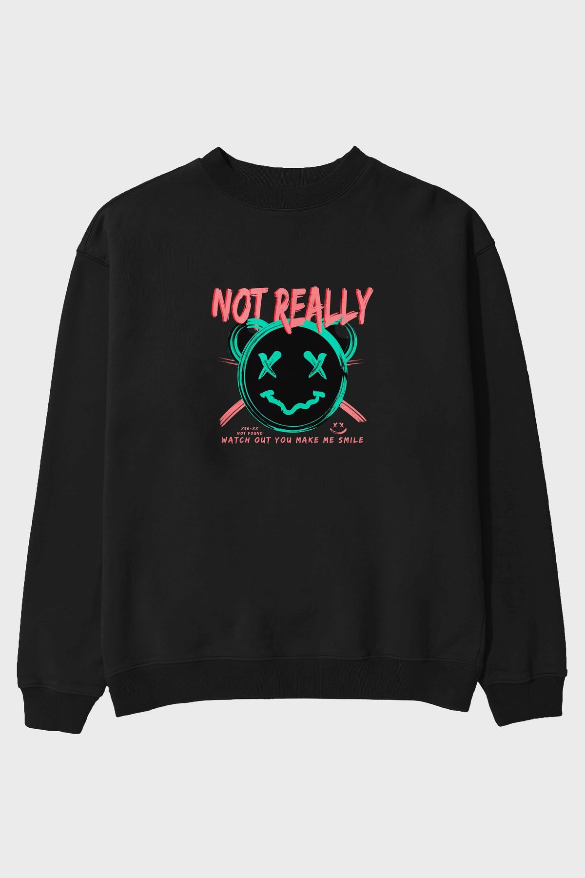 Not Really Bear Ön Baskılı Oversize Sweatshirt Erkek Kadın Unisex