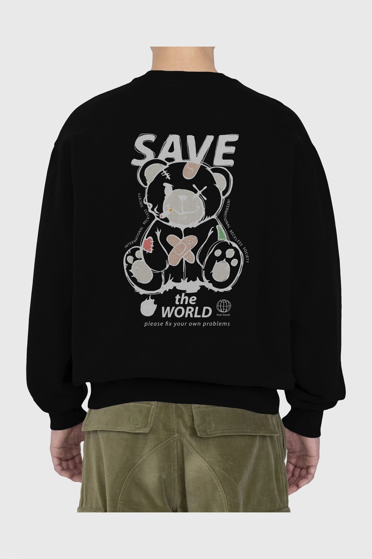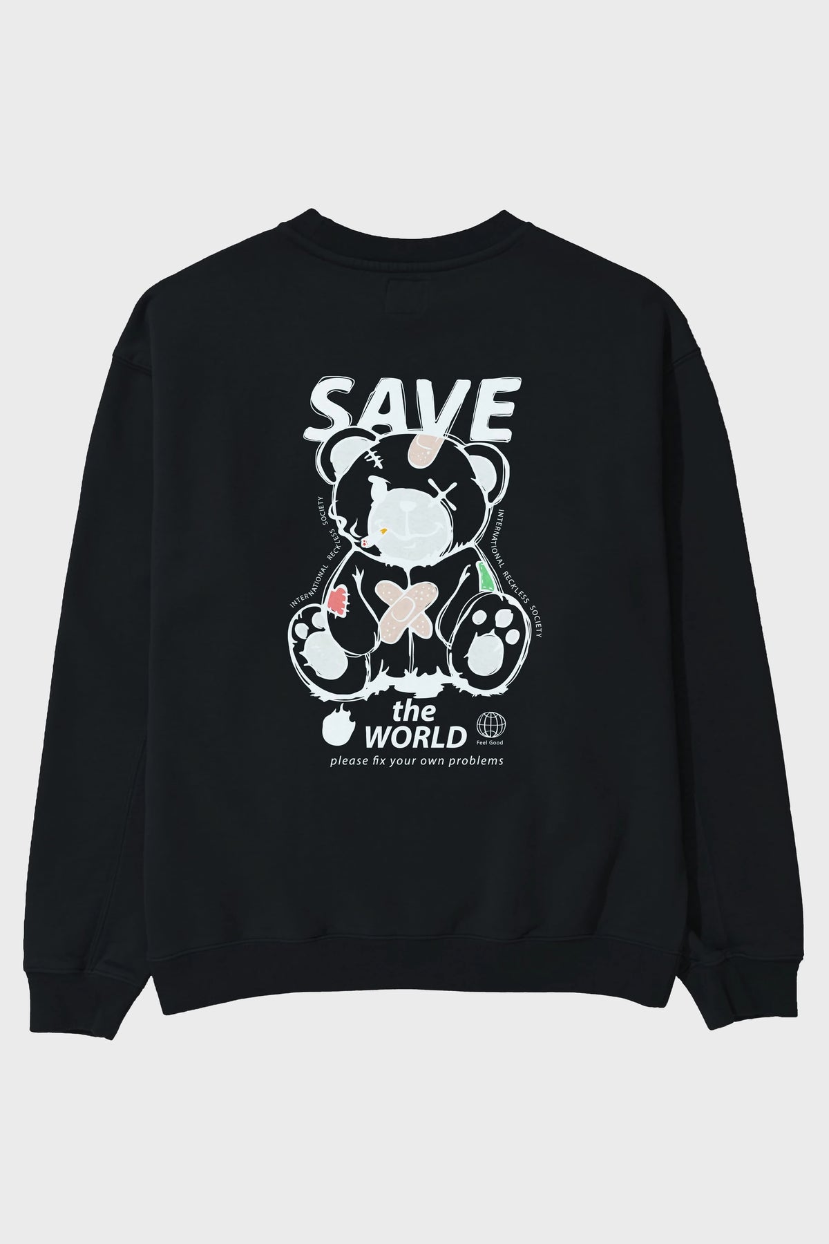 Save the World Bear Arka Baskılı Oversize Sweatshirt Erkek Kadın Unisex