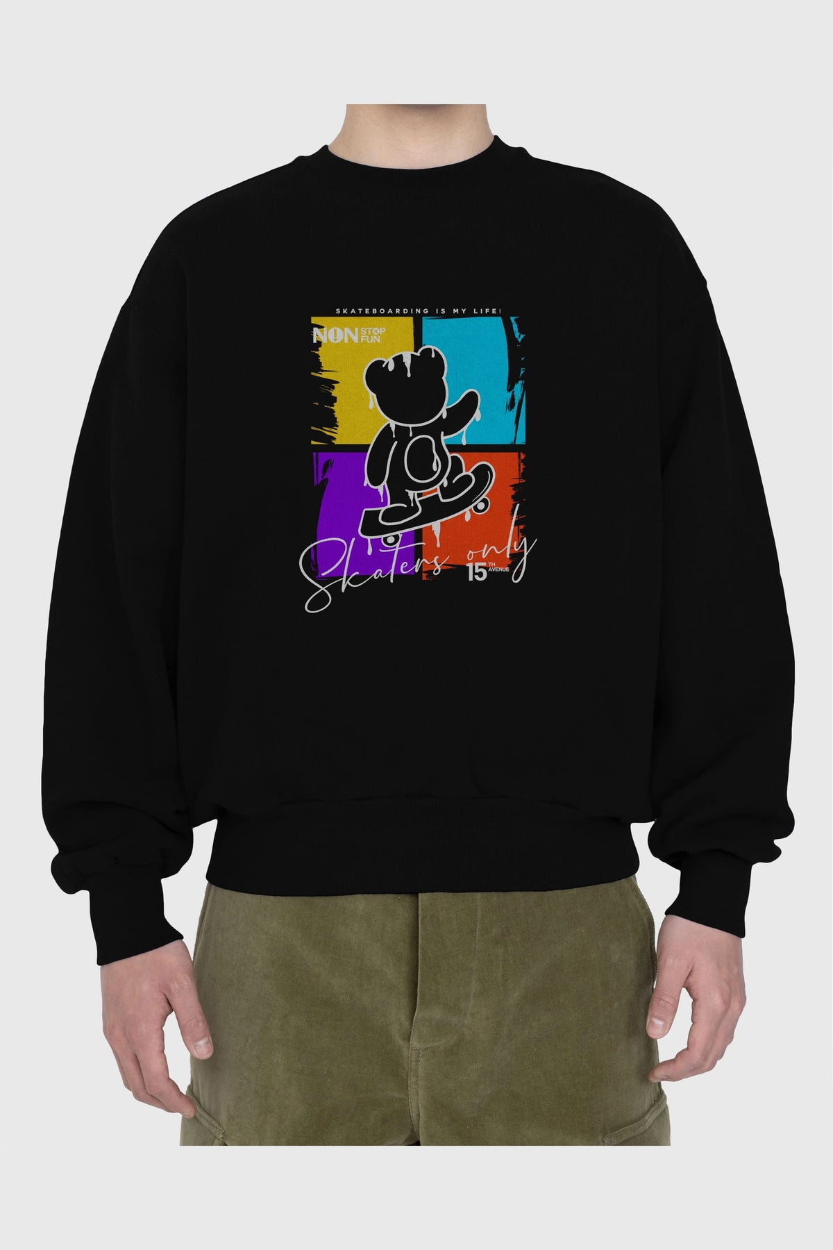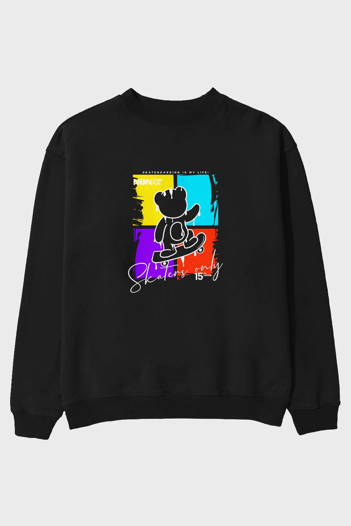 Skaters Only Bear Ön Baskılı Oversize Sweatshirt Erkek Kadın Unisex