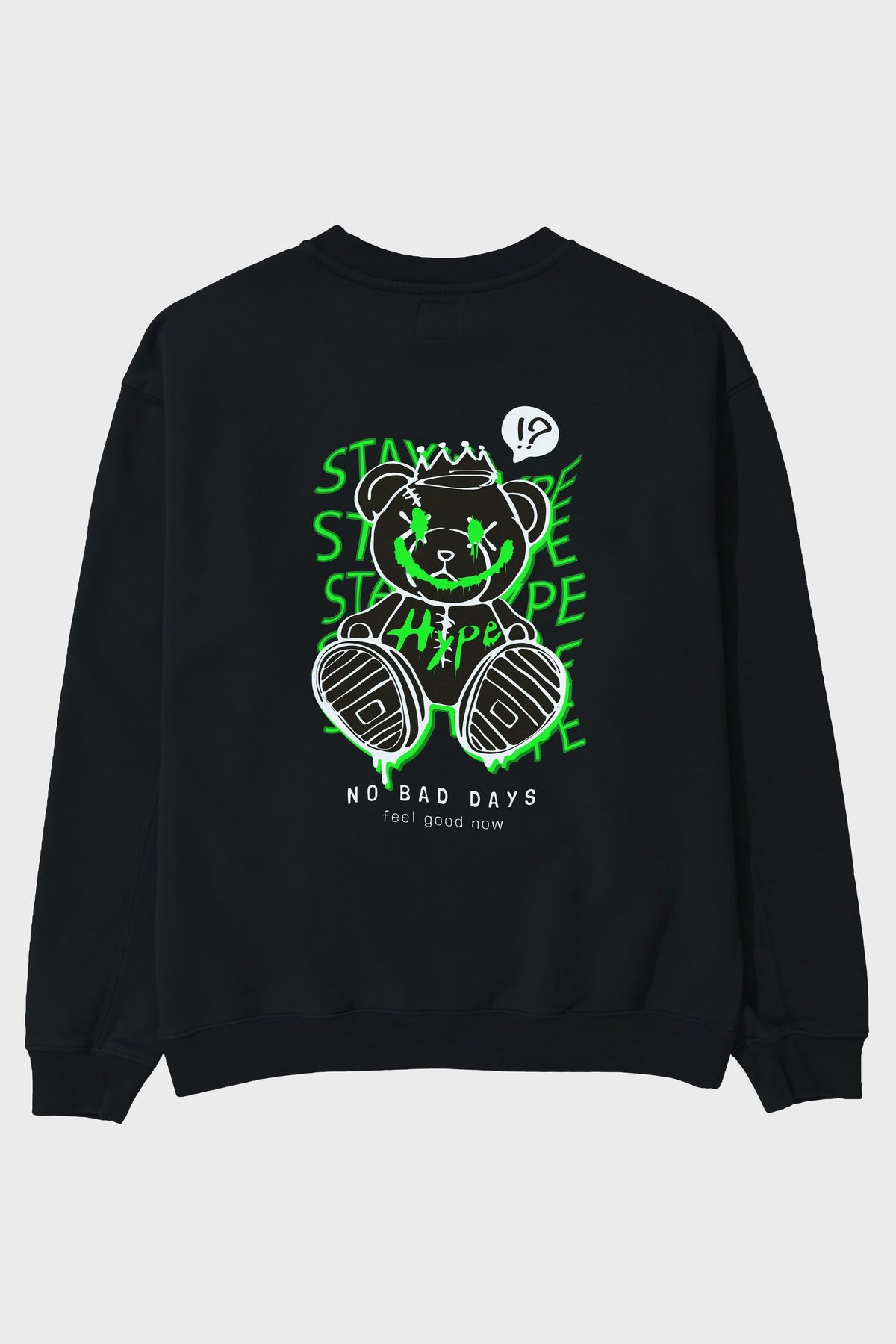 Stay Hype Bear Arka Baskılı Oversize Sweatshirt Erkek Kadın Unisex
