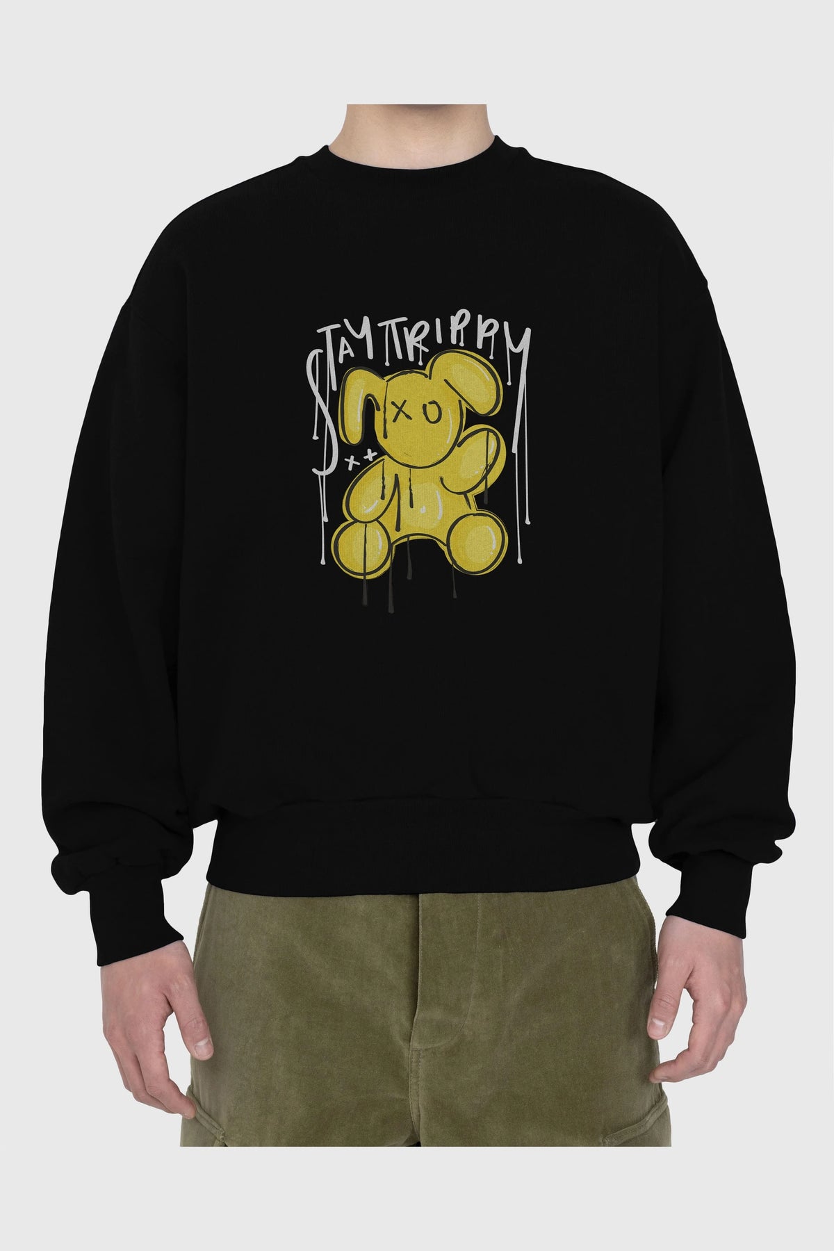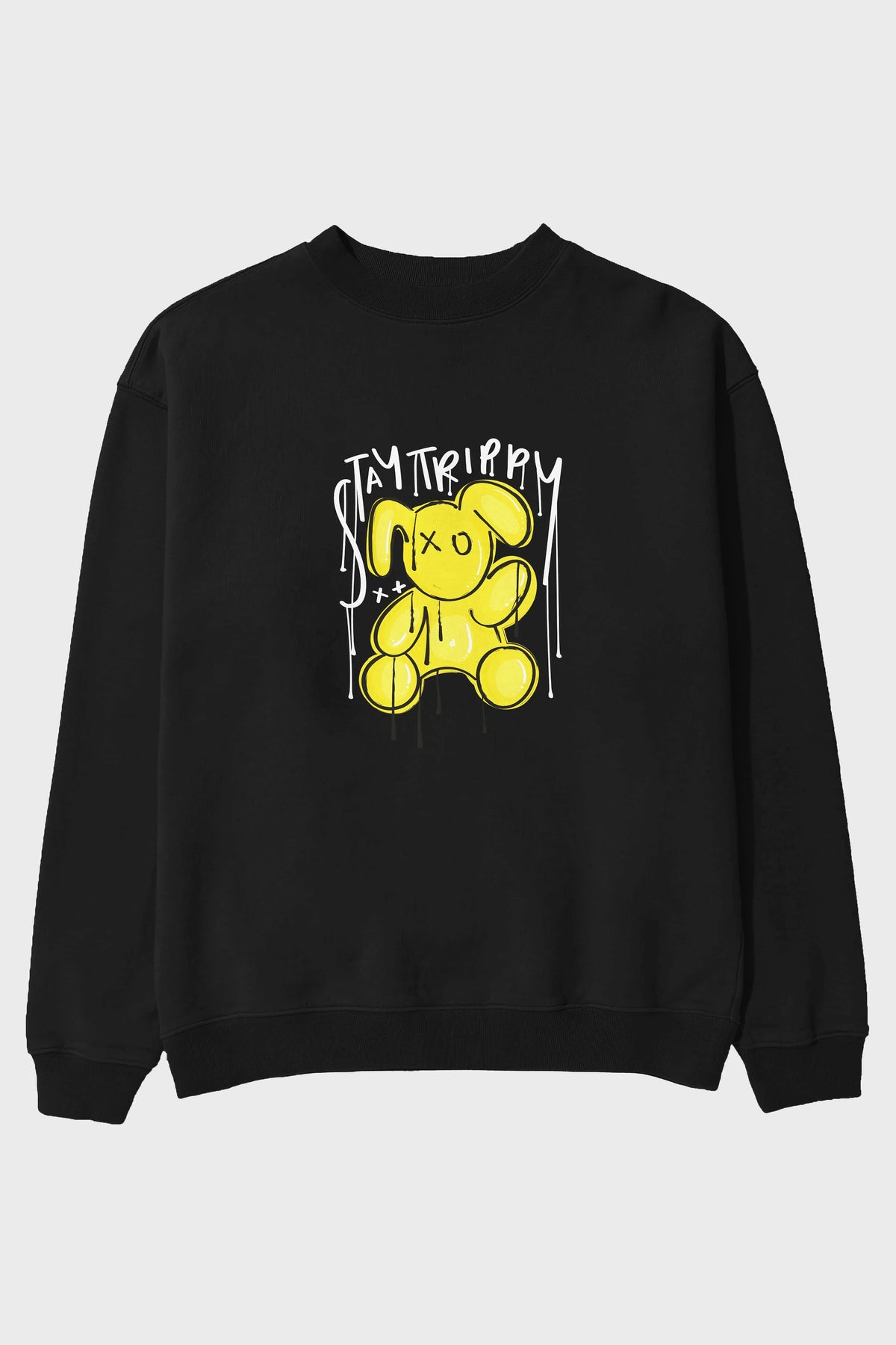 Stay Trippy Bear Ön Baskılı Oversize Sweatshirt Erkek Kadın Unisex