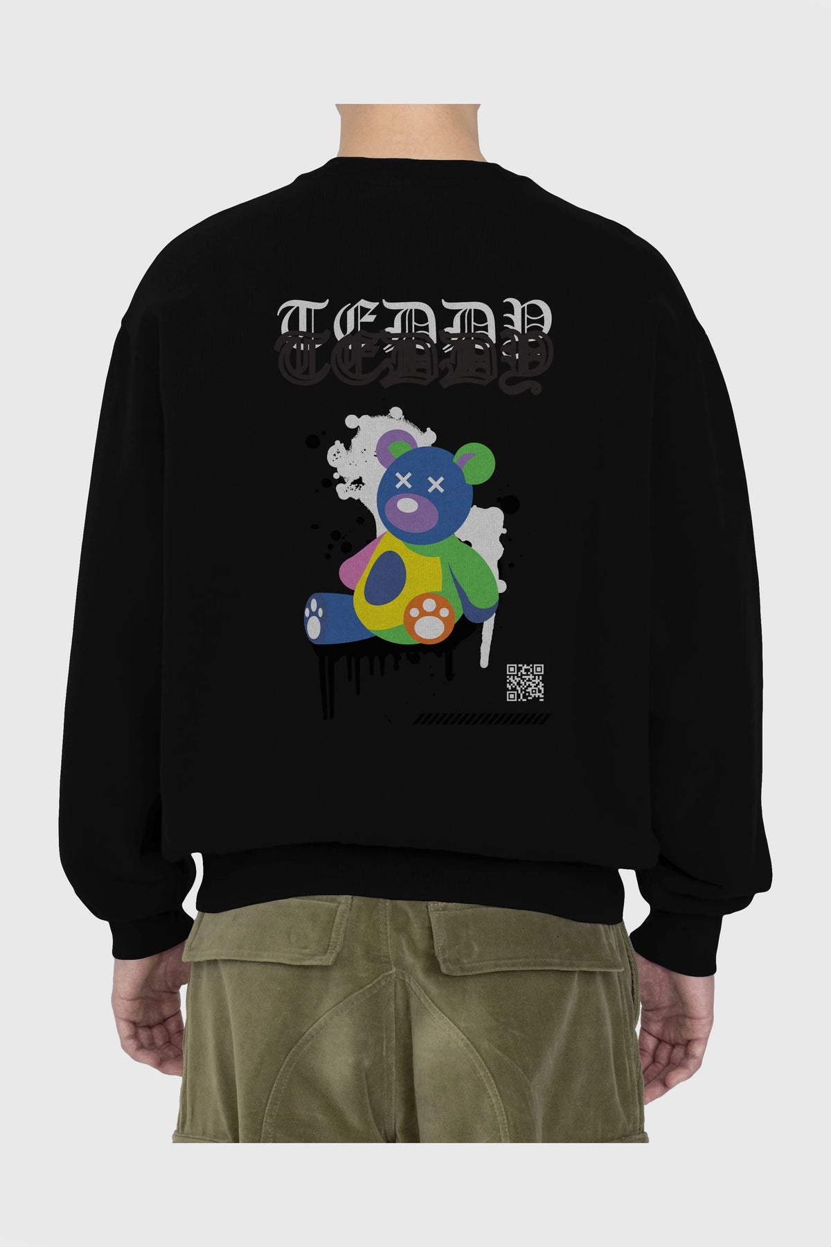 Teddy Bear Arka Baskılı Oversize Sweatshirt Erkek Kadın Unisex
