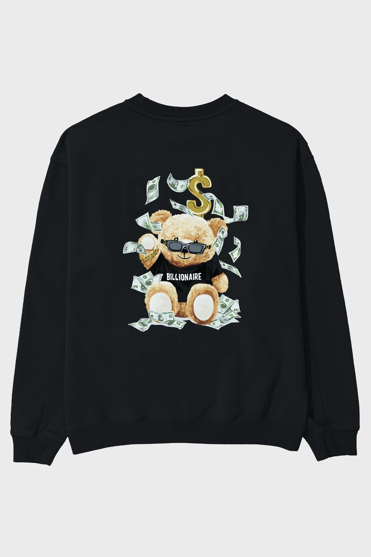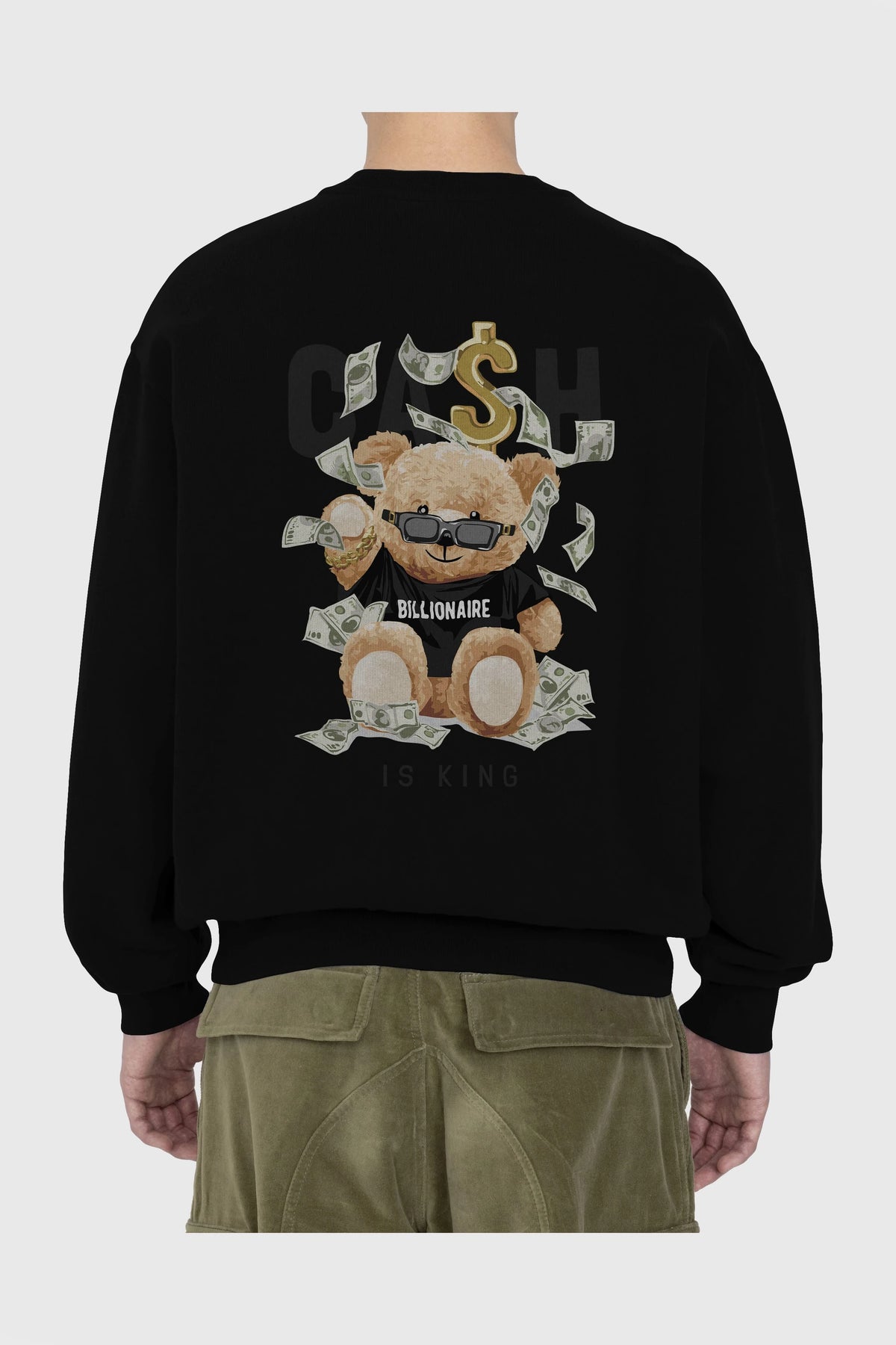Teddy Bear Billionaire Arka Baskılı Oversize Sweatshirt Erkek Kadın Unisex