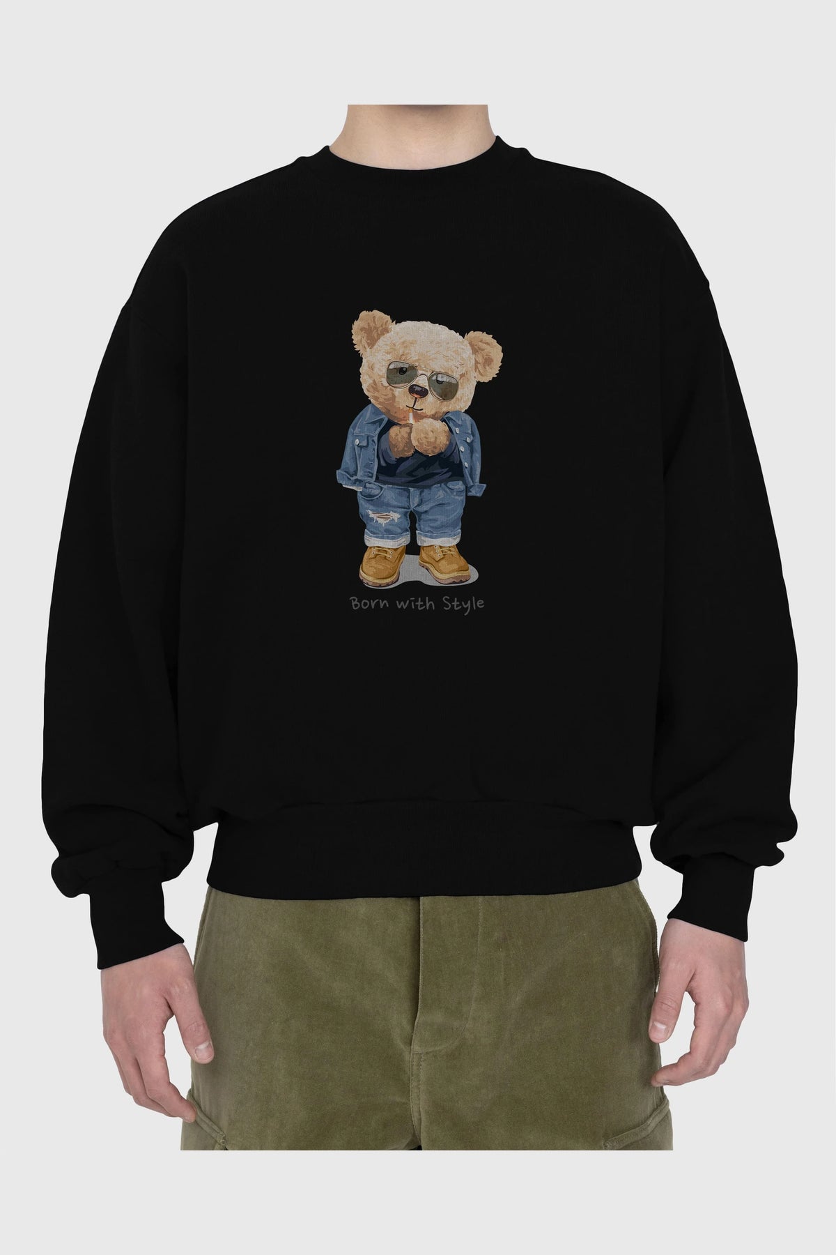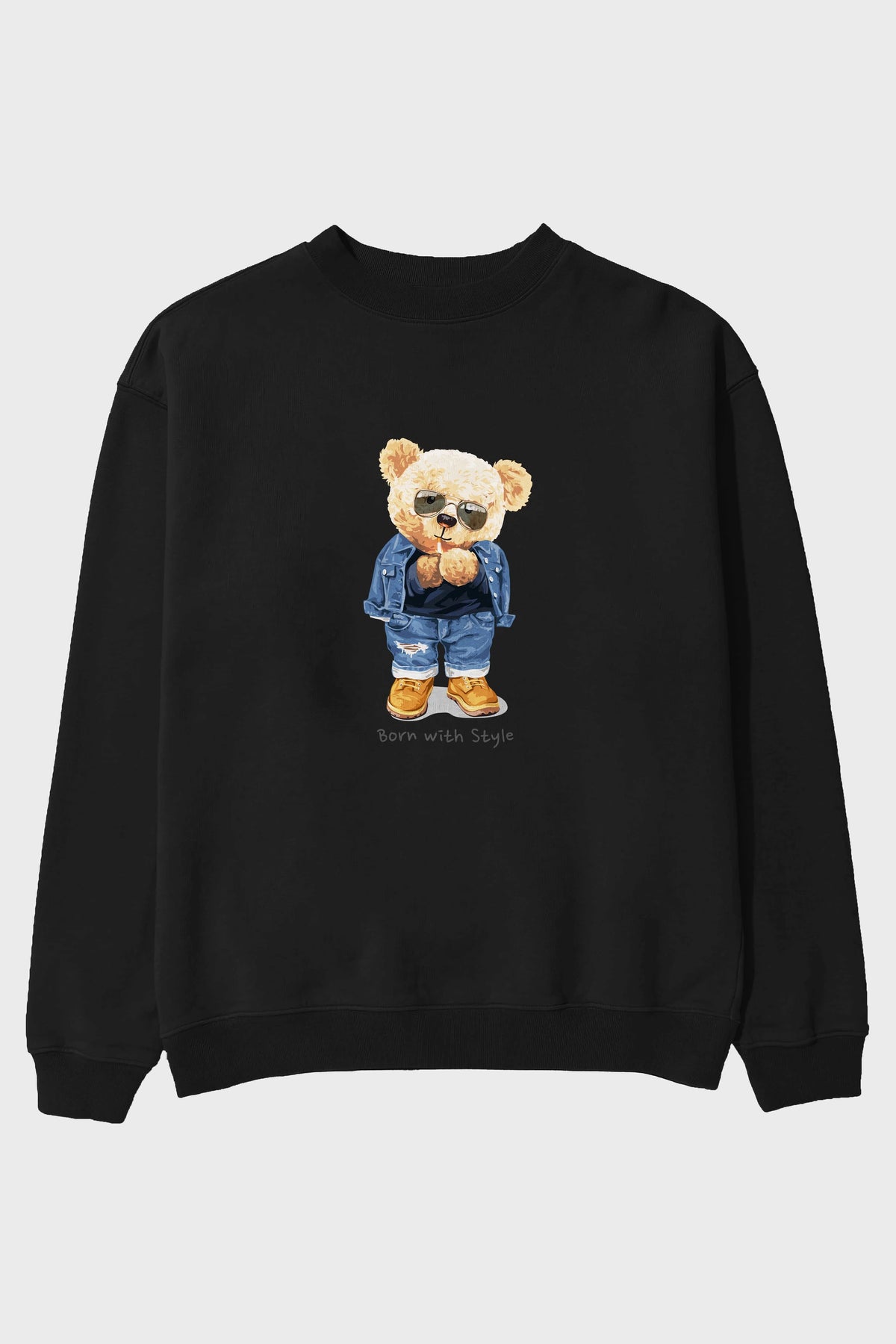 Teddy Bear Born With Style Ön Baskılı Oversize Sweatshirt Erkek Kadın Unisex