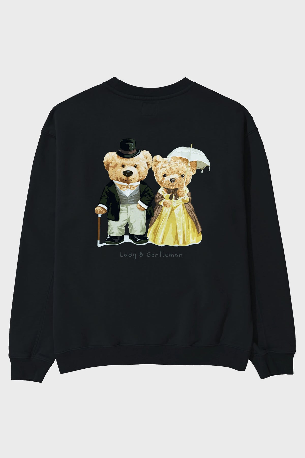 Teddy Bear Couple Arka Baskılı Oversize Sweatshirt Erkek Kadın Unisex