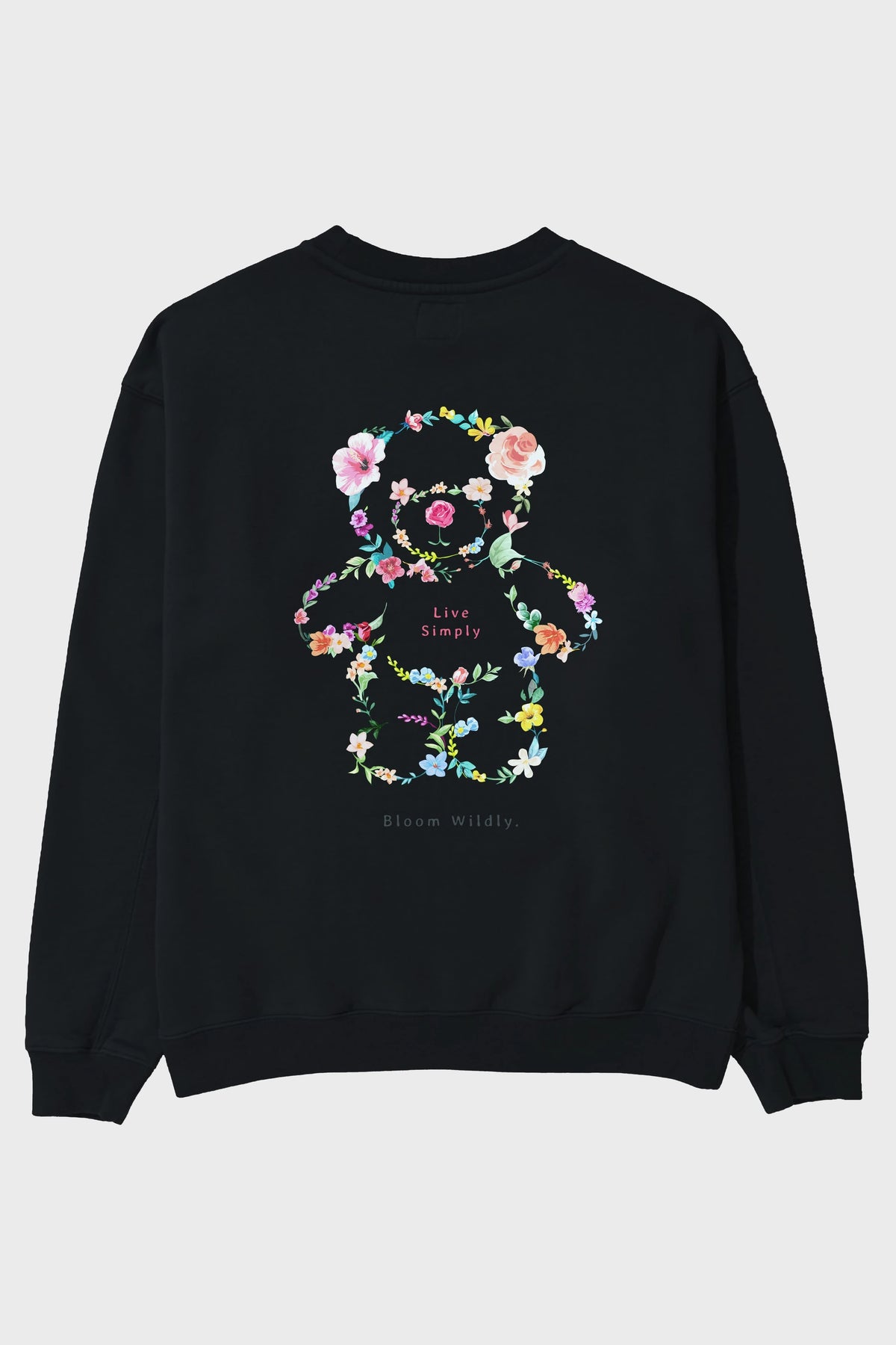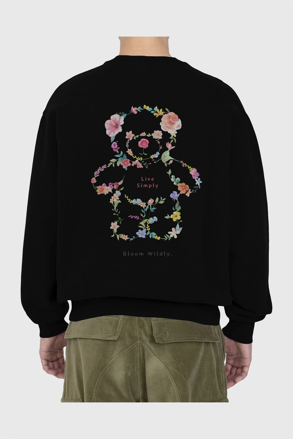 Teddy Bear Flowers Arka Baskılı Oversize Sweatshirt Erkek Kadın Unisex