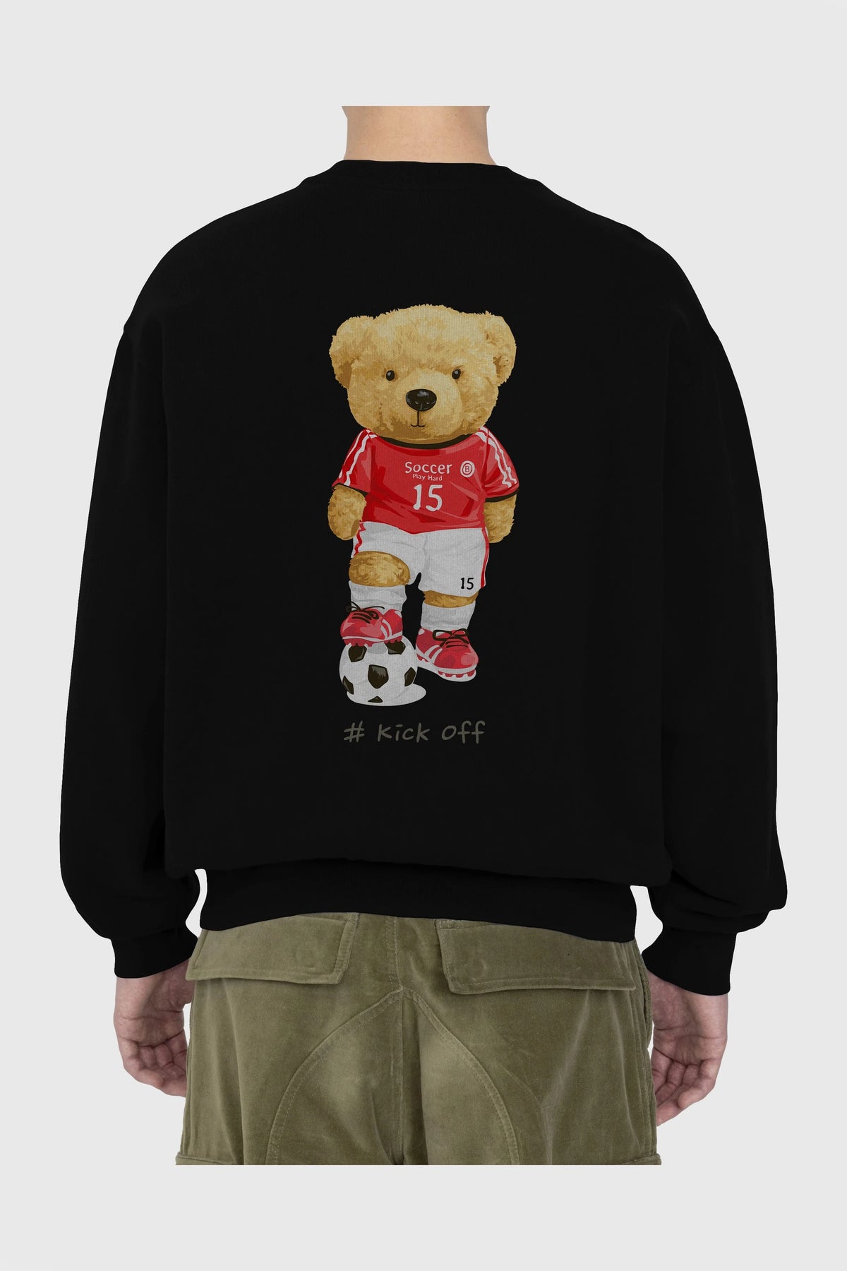 Teddy Bear Kick Off Arka Baskılı Oversize Sweatshirt Erkek Kadın Unisex