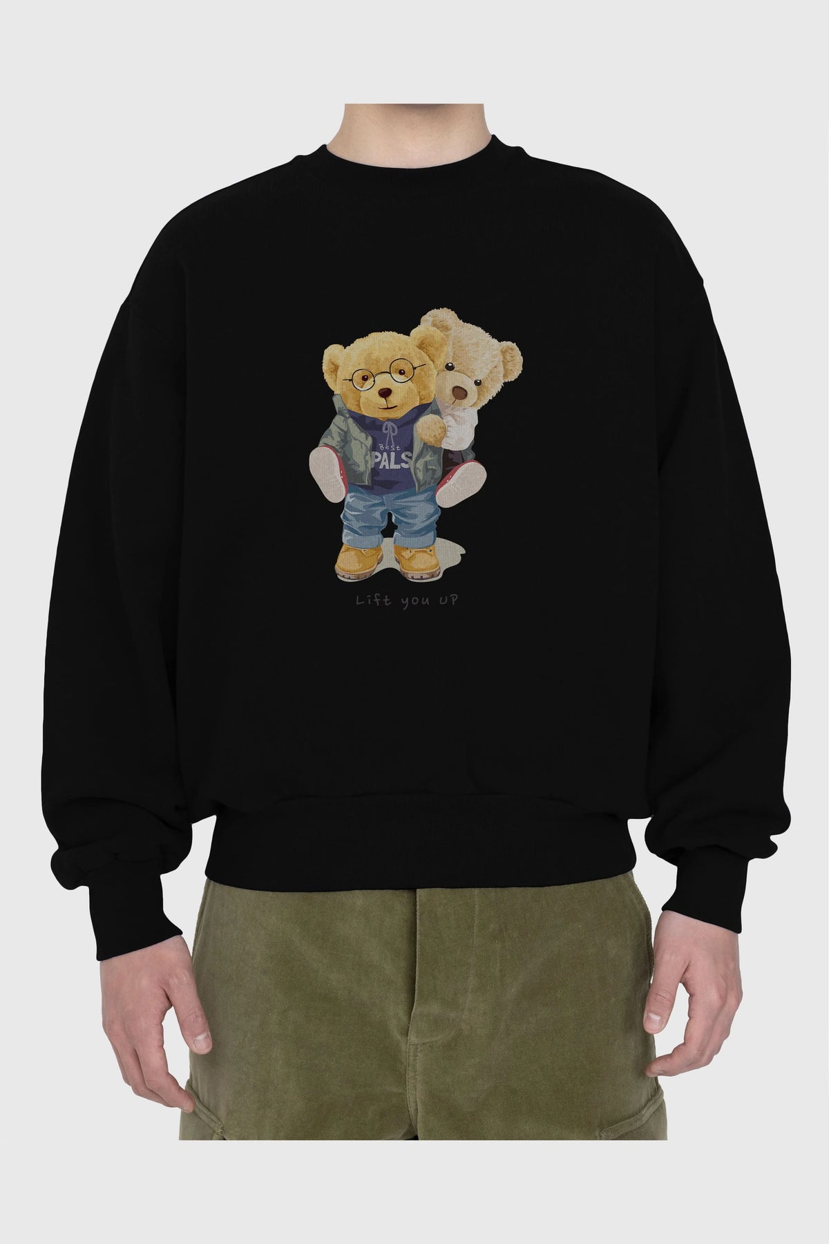 Teddy Bear Lift You Up Ön Baskılı Oversize Sweatshirt Erkek Kadın Unisex