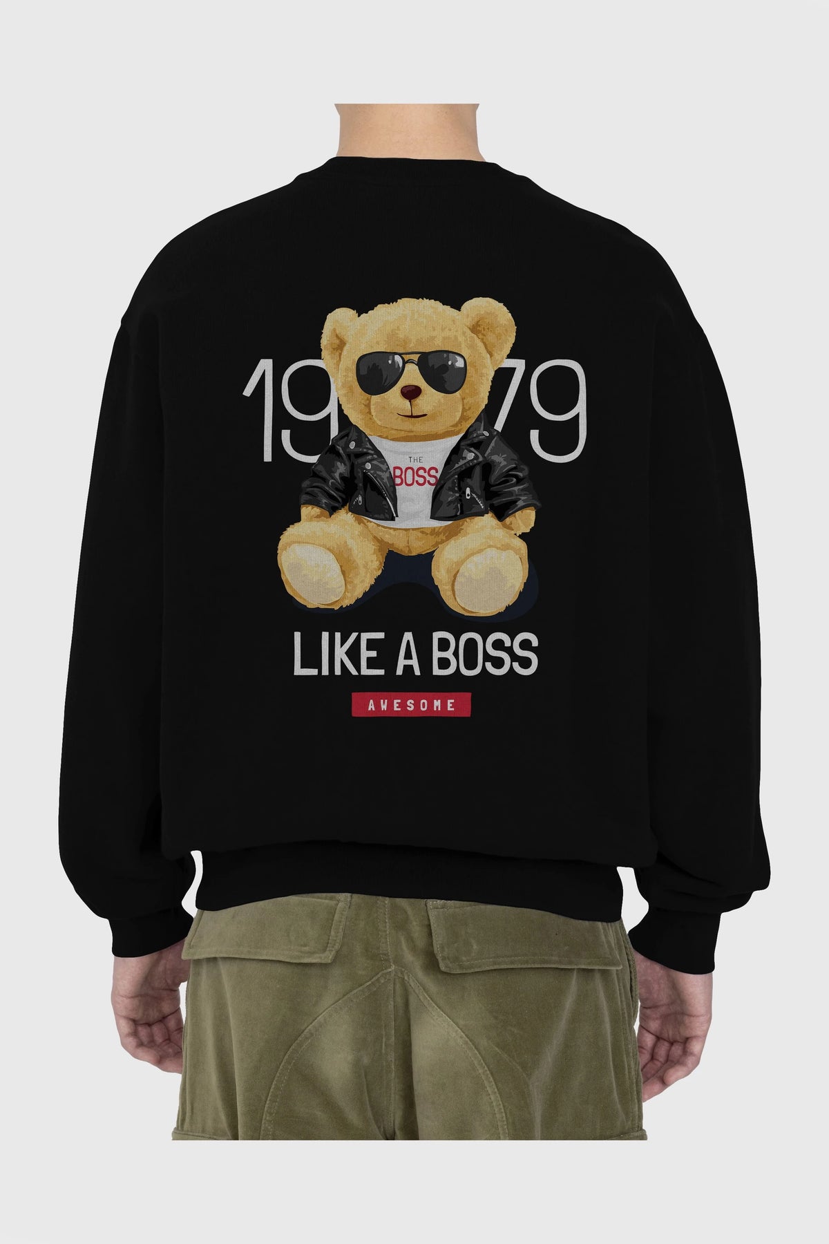 Teddy Bear Like A Boss Arka Baskılı Oversize Sweatshirt Erkek Kadın Unisex