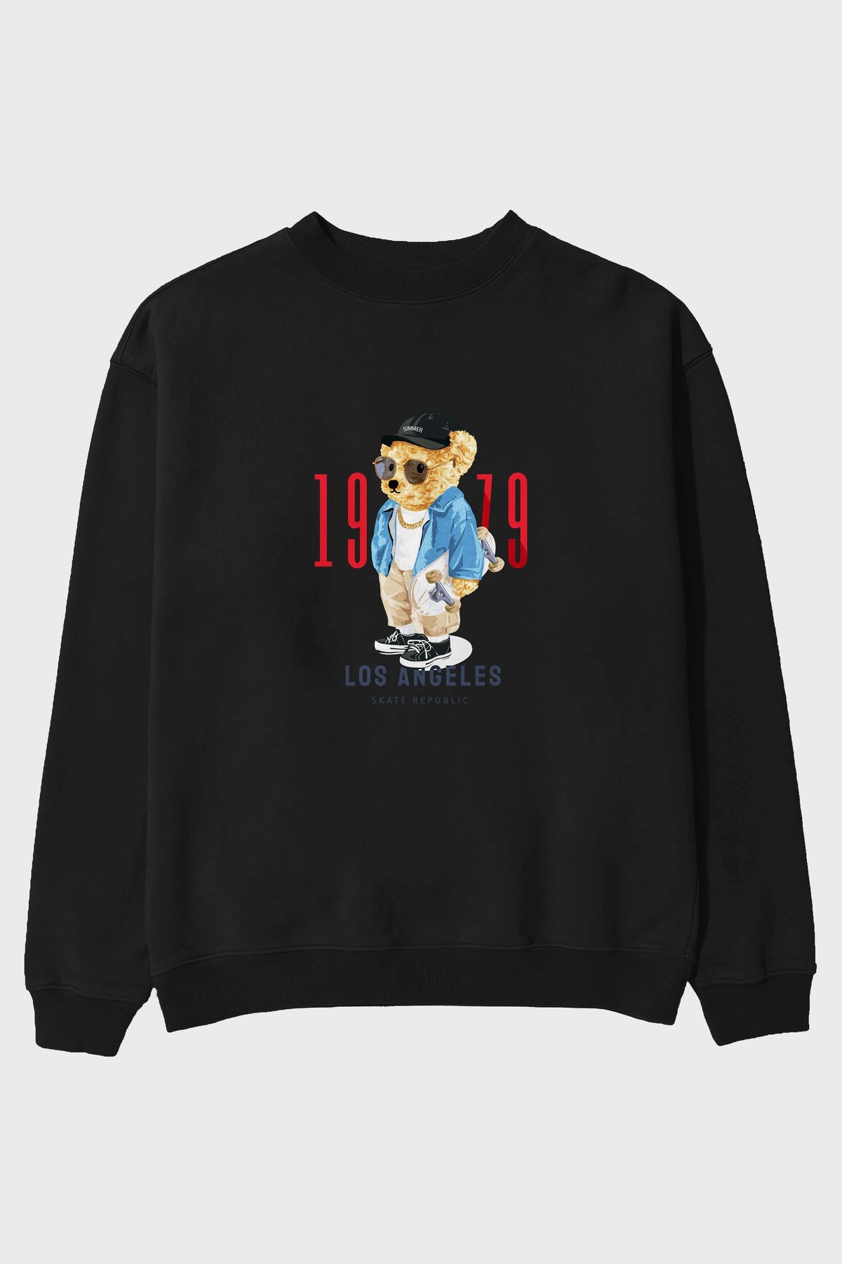 Teddy Bear Los Angeles Ön Baskılı Oversize Sweatshirt Erkek Kadın Unisex