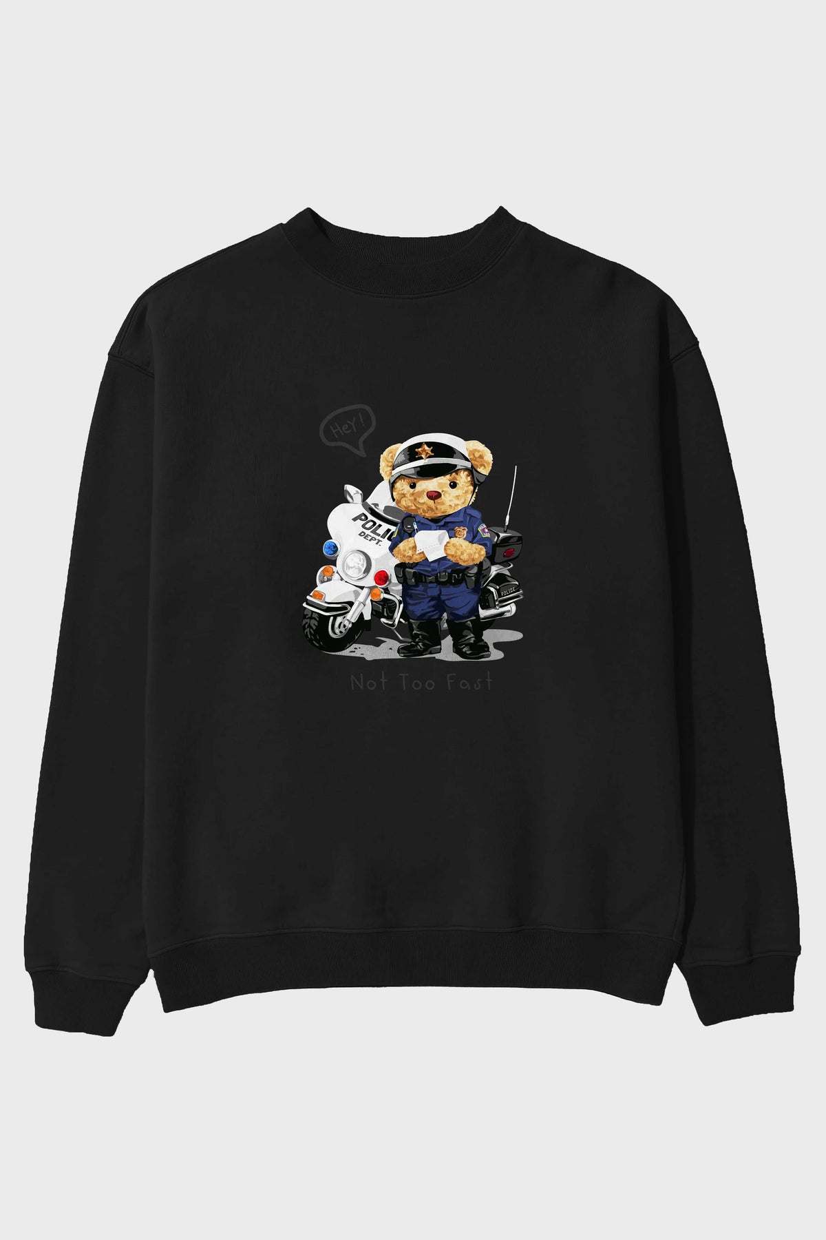Teddy Bear Not Too Fast Ön Baskılı Oversize Sweatshirt Erkek Kadın Unisex