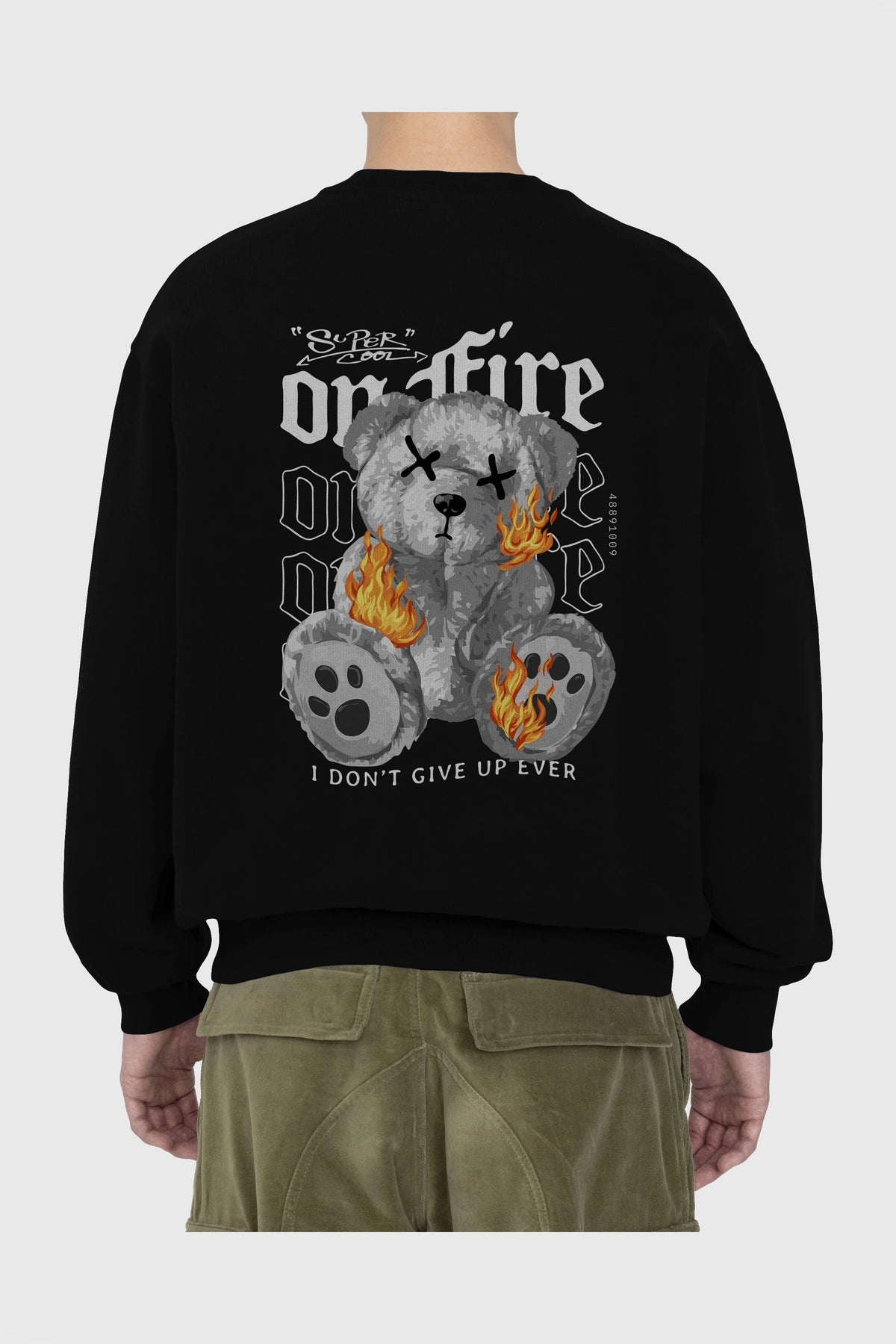 Teddy Bear On Fire Arka Baskılı Oversize Sweatshirt Erkek Kadın Unisex