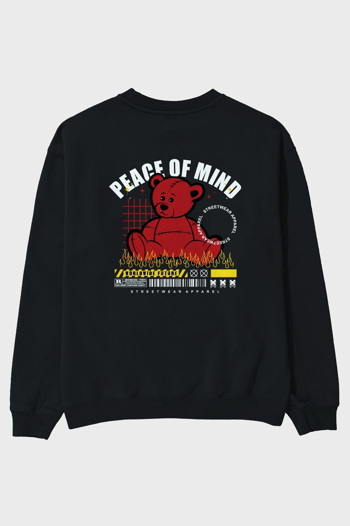 Teddy Bear Peace of Mind Arka Baskılı Oversize Sweatshirt Erkek Kadın Unisex