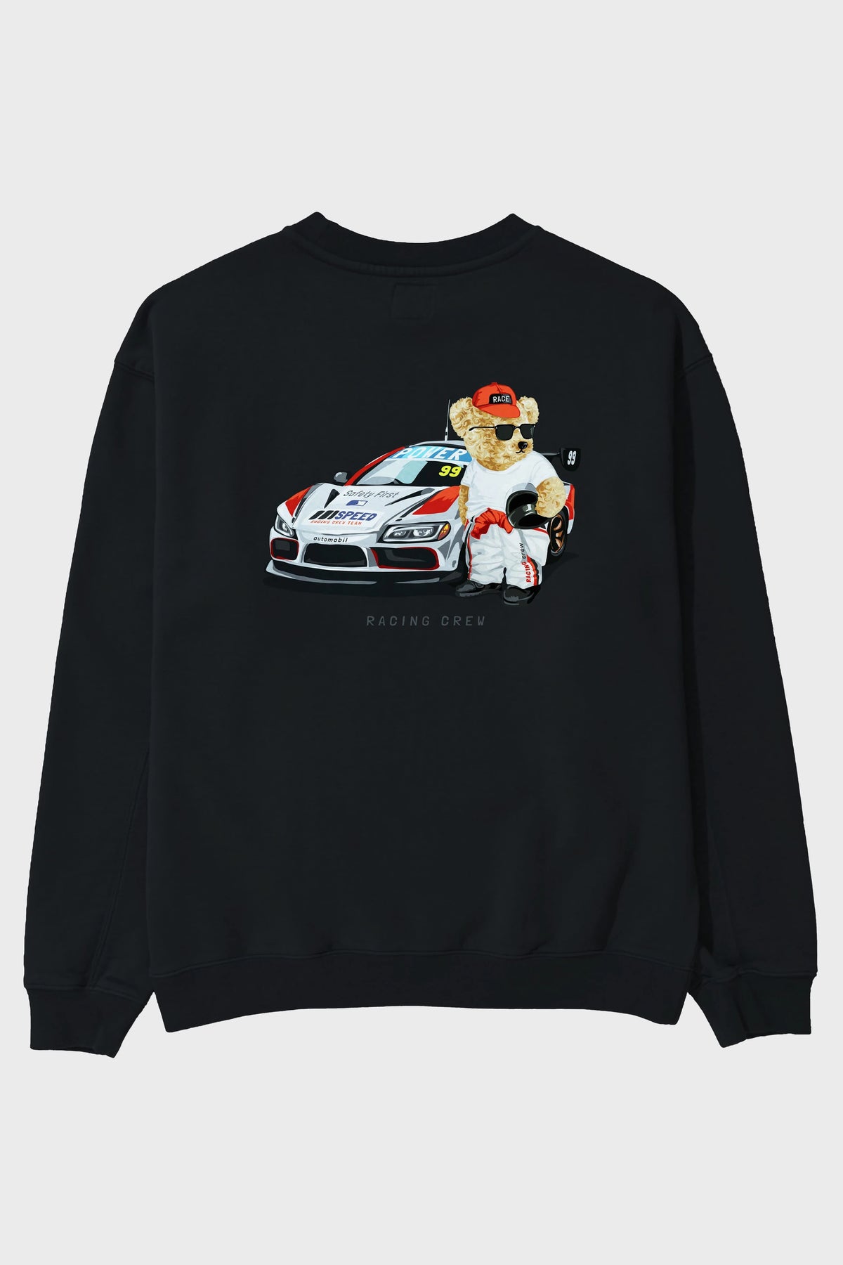 Teddy Bear Racing Crew Arka Baskılı Oversize Sweatshirt Erkek Kadın Unisex
