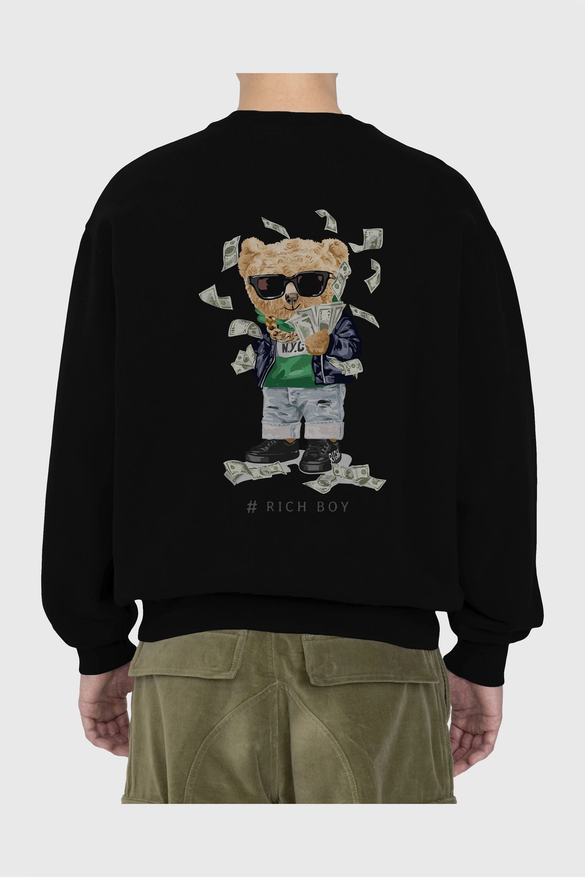 Teddy Bear Rich Boy Arka Baskılı Oversize Sweatshirt Erkek Kadın Unisex