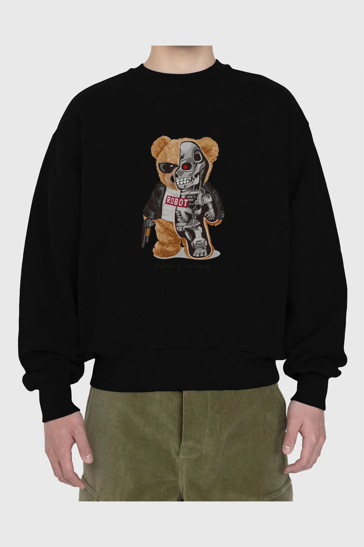 Teddy Bear Robot Ön Baskılı Oversize Sweatshirt Erkek Kadın Unisex