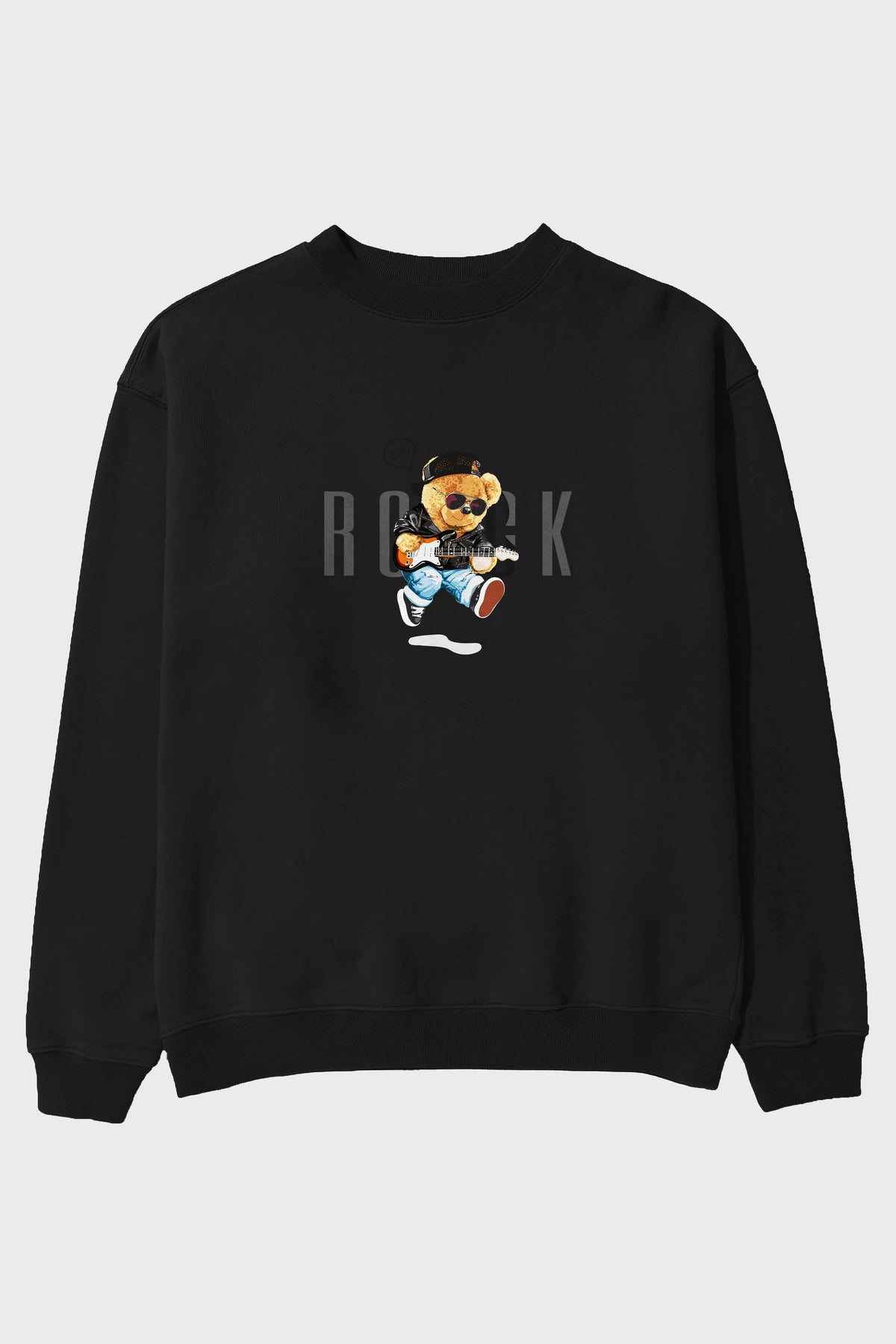 Teddy Bear Rock Ön Baskılı Oversize Sweatshirt Erkek Kadın Unisex