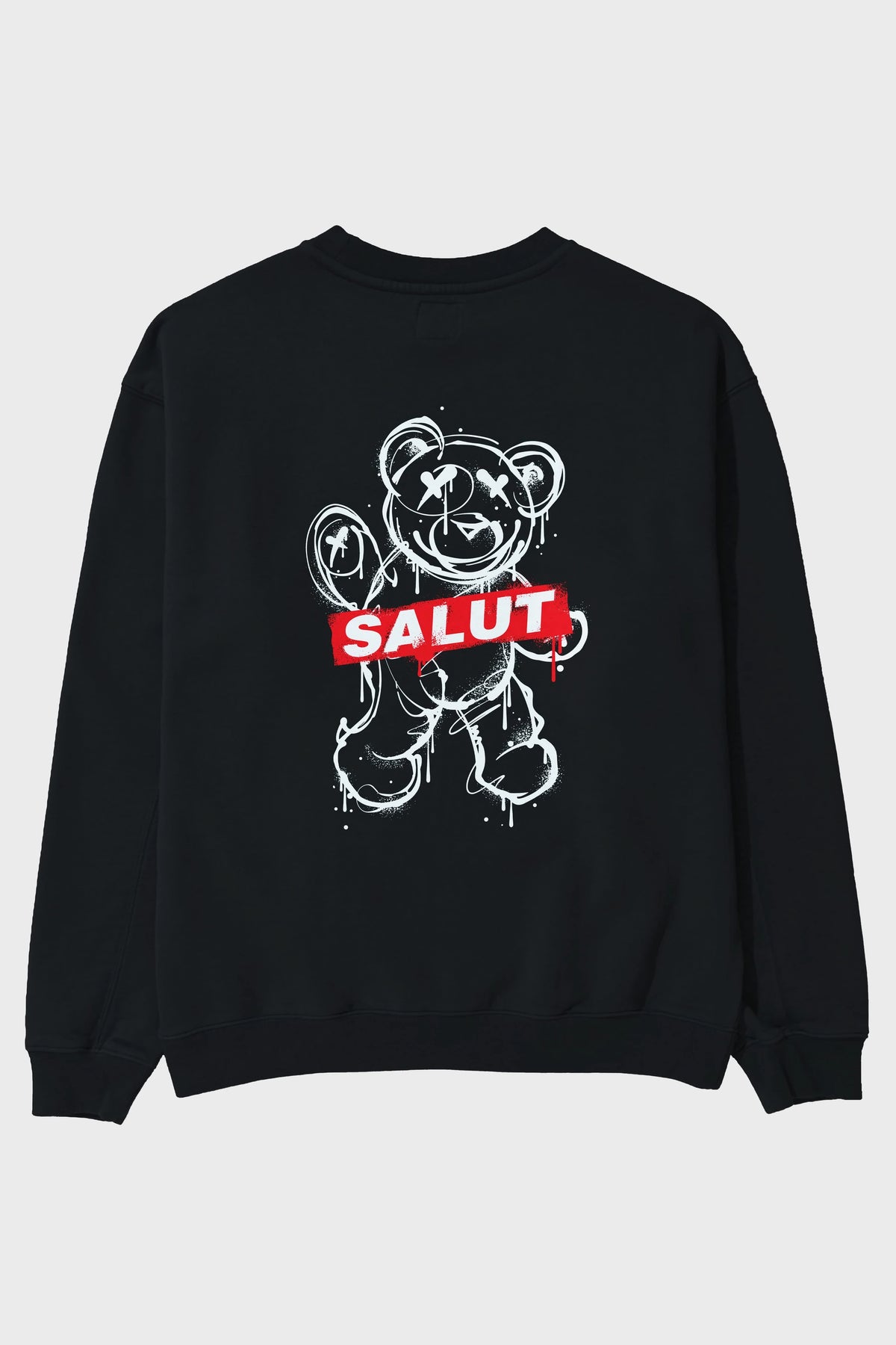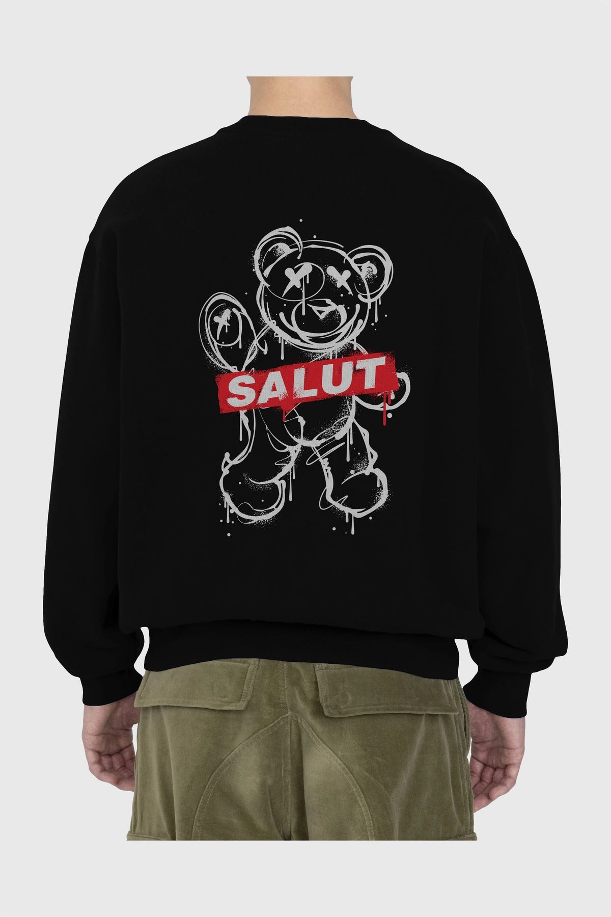 Teddy Bear Salut Arka Baskılı Oversize Sweatshirt Erkek Kadın Unisex