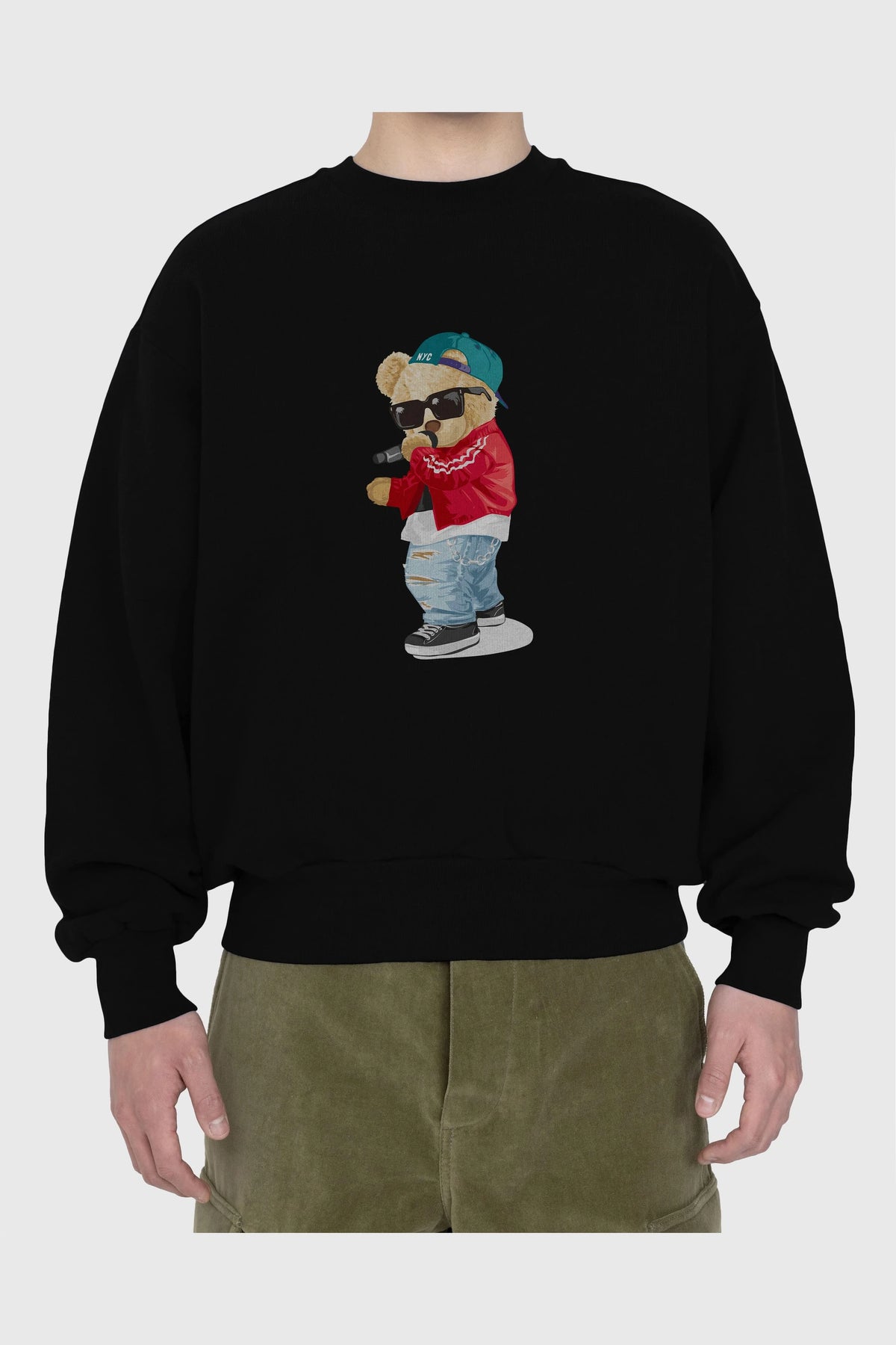 Teddy Bear Şarkıcı Ön Baskılı Oversize Sweatshirt Erkek Kadın Unisex