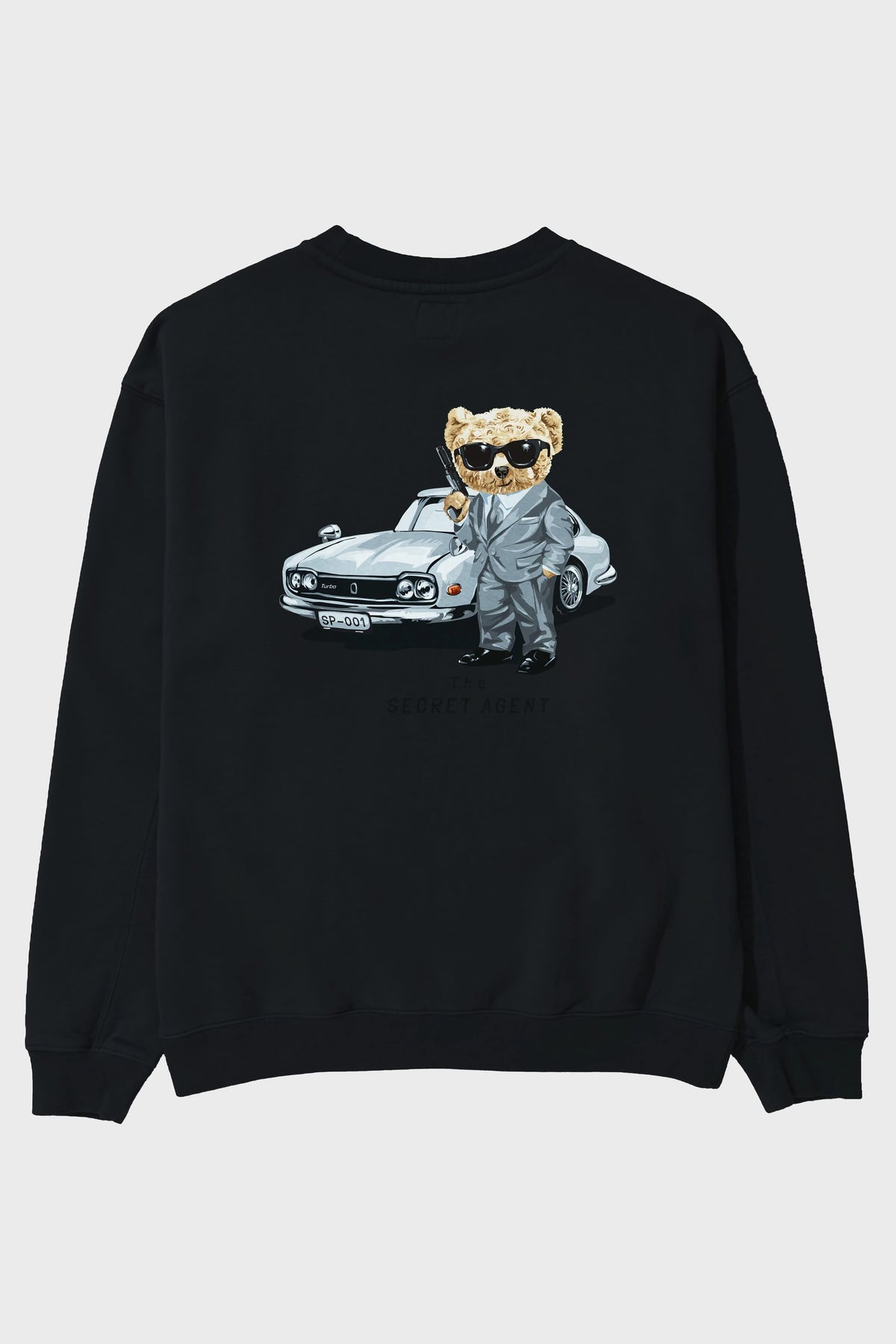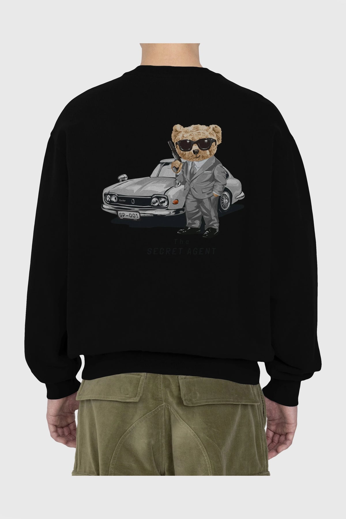 Teddy Bear The Secret Agent Arka Baskılı Oversize Sweatshirt Erkek Kadın Unisex