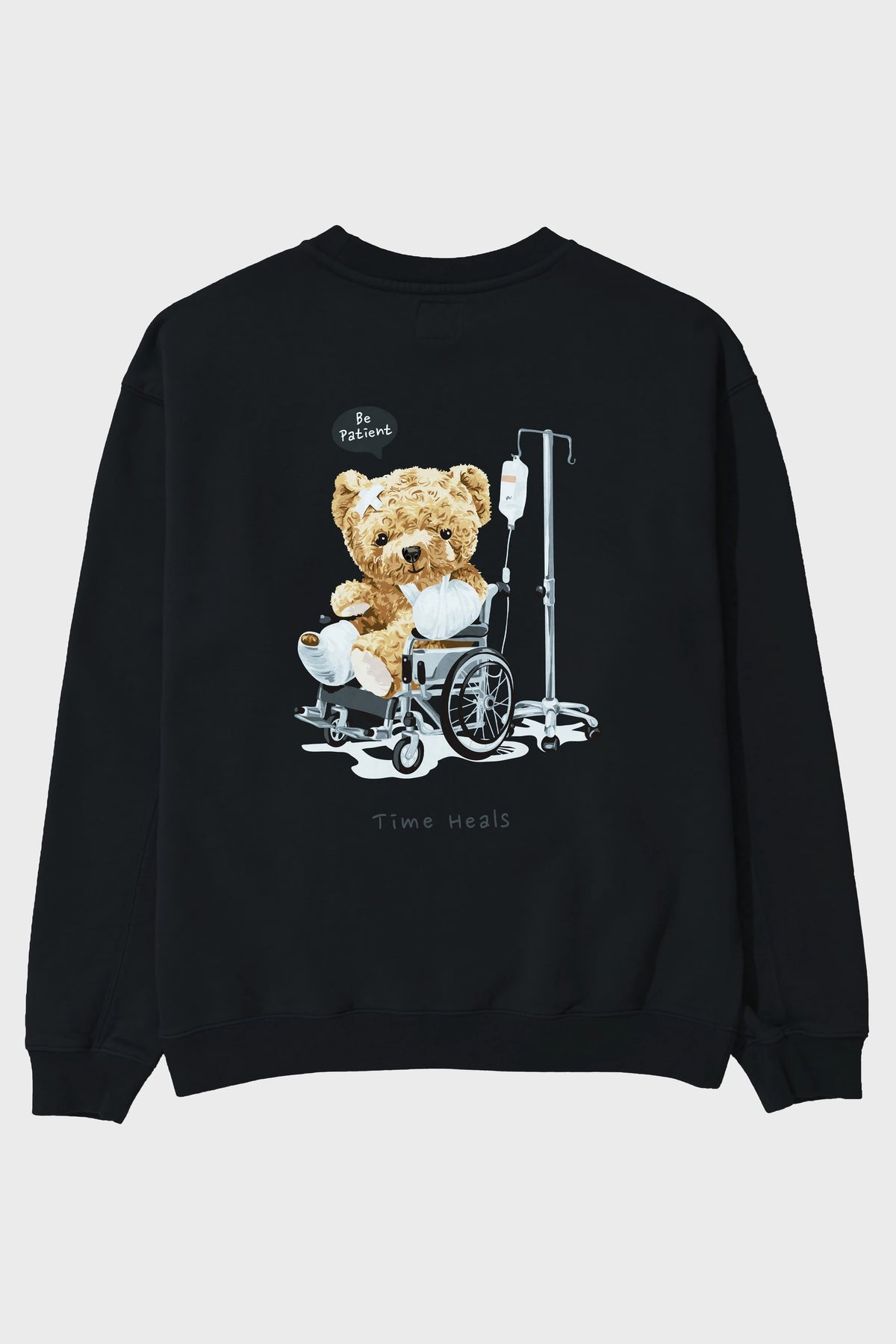 Teddy Bear Time Heals Arka Baskılı Oversize Sweatshirt Erkek Kadın Unisex