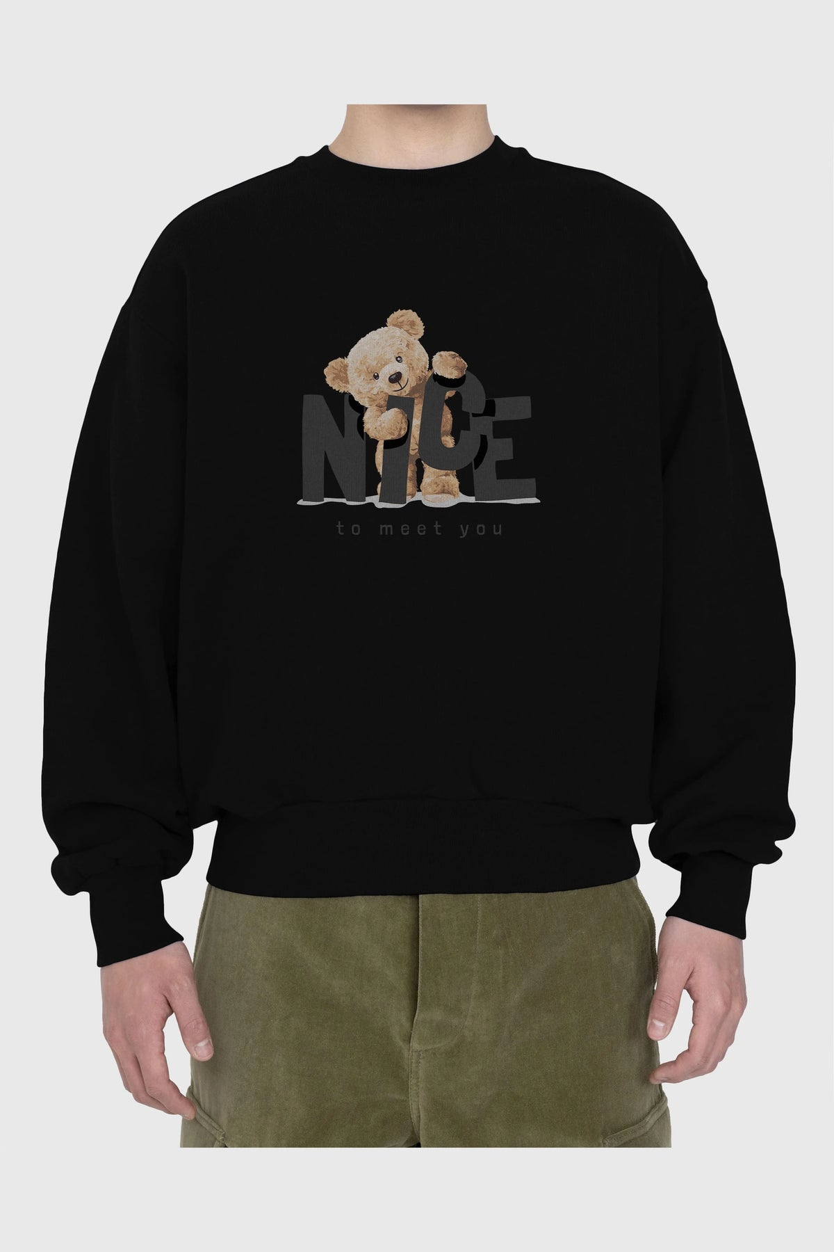 Teddy Nıce To Meet You Ön Baskılı Oversize Sweatshirt Erkek Kadın Unisex