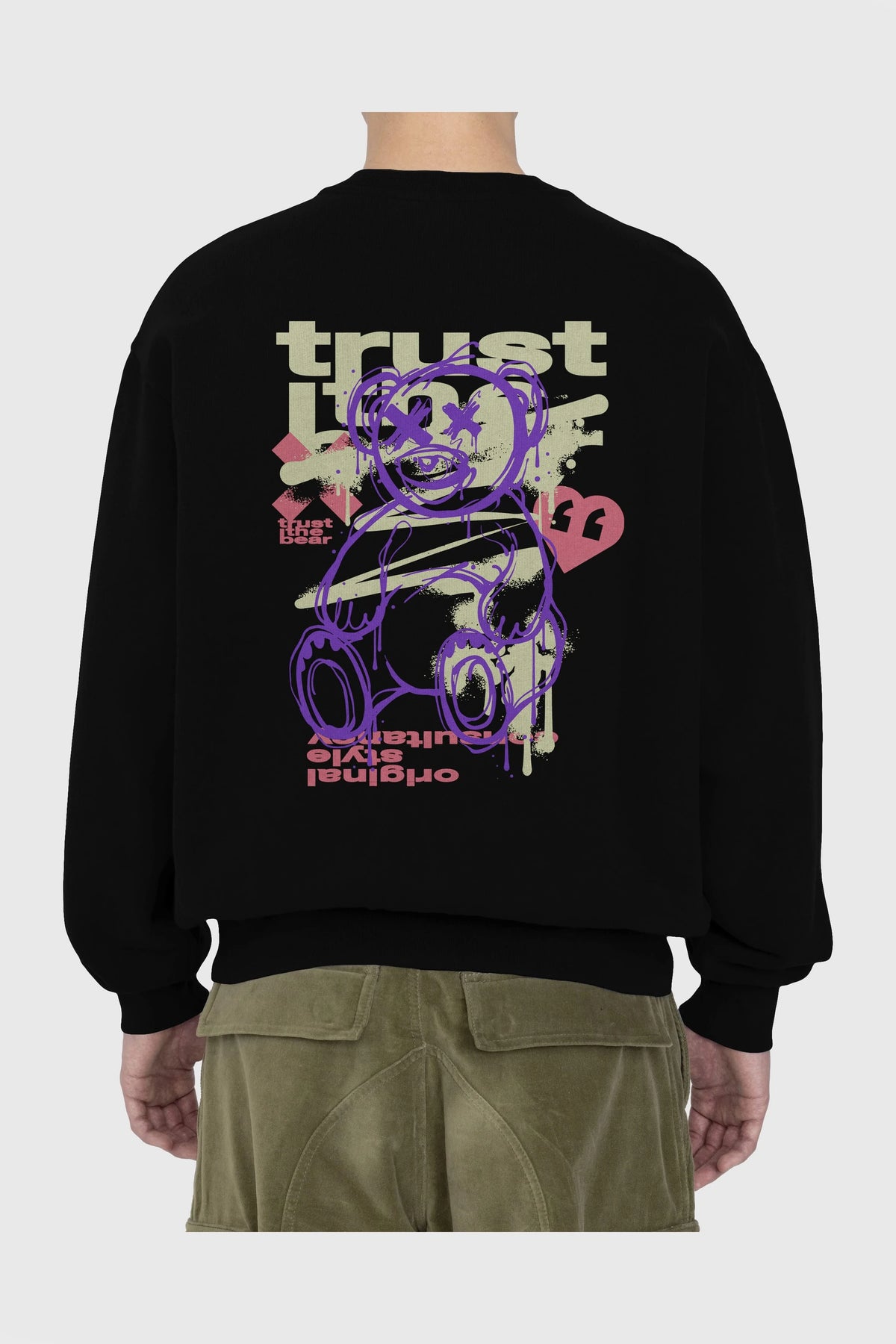 Trust The Bear 3 Arka Baskılı Oversize Sweatshirt Erkek Kadın Unisex