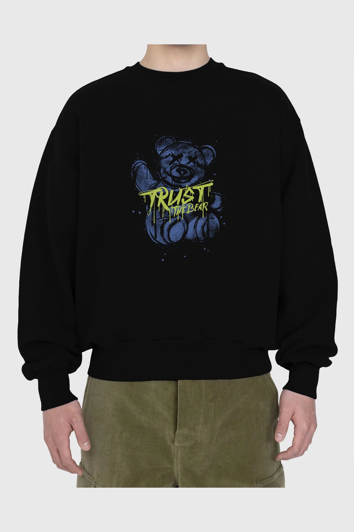 Trust The Bear 4 Ön Baskılı Oversize Sweatshirt Erkek Kadın Unisex