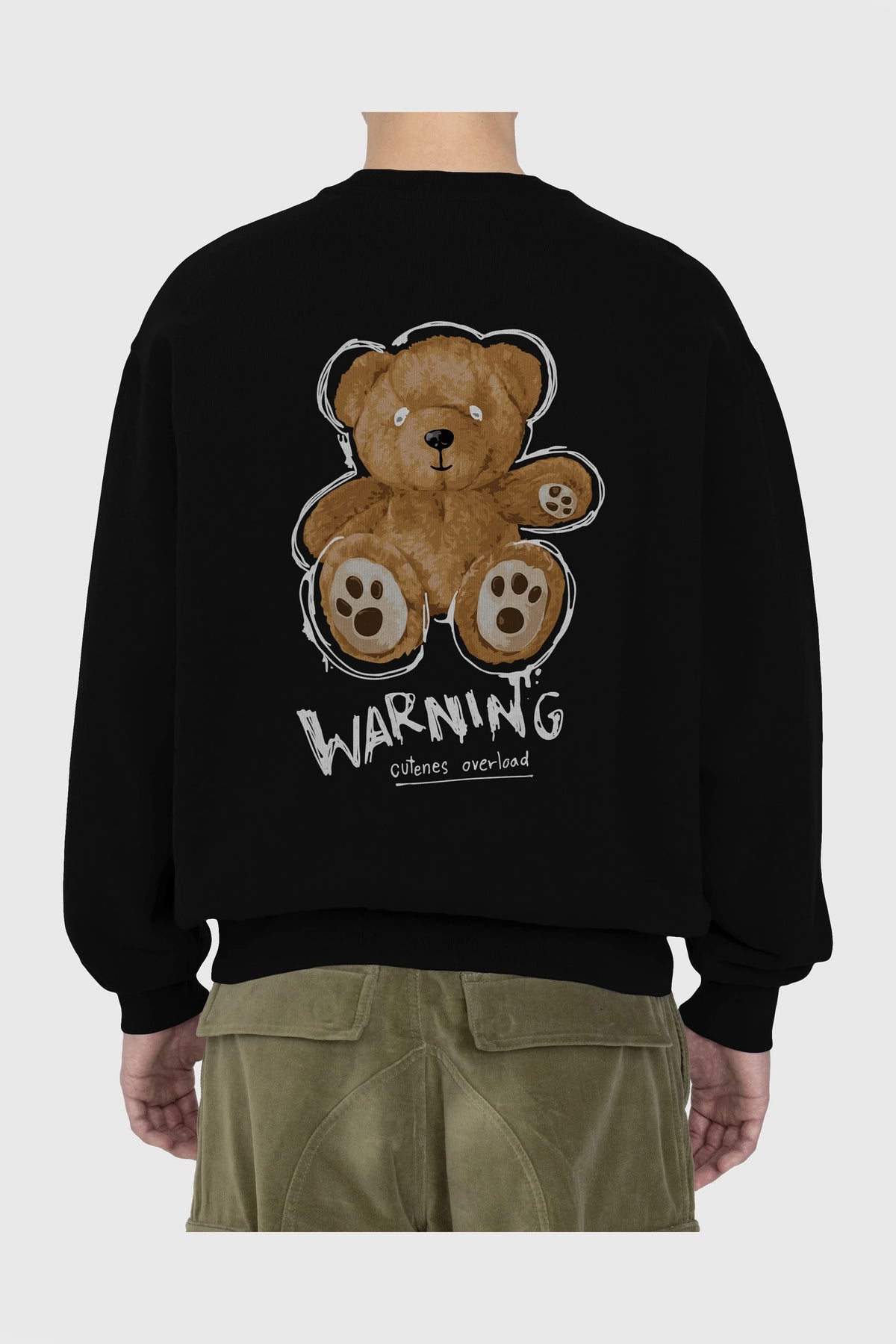 Warning Cuteness Bear Arka Baskılı Oversize Sweatshirt Erkek Kadın Unisex