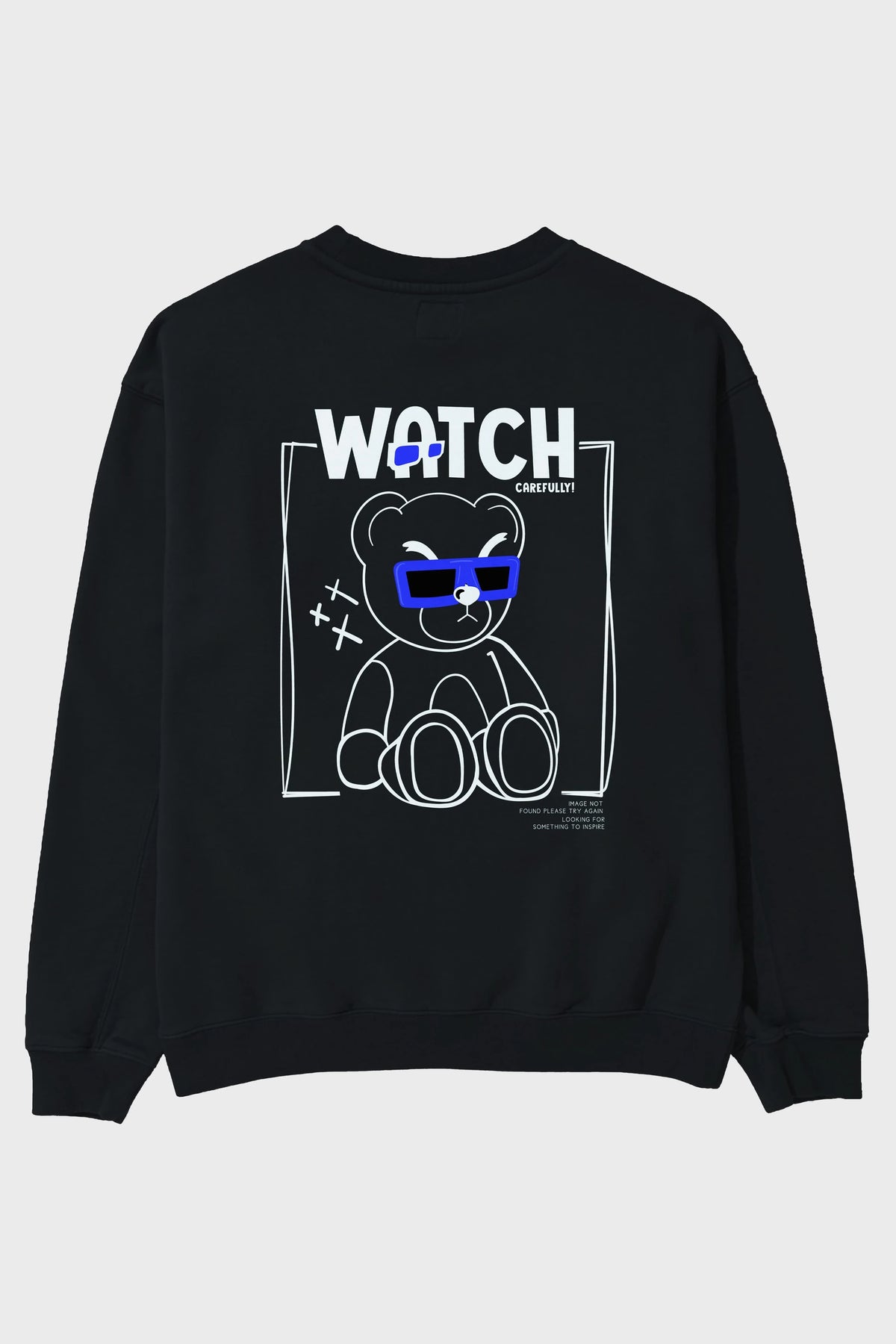 Watch Carefully Bear Arka Baskılı Oversize Sweatshirt Erkek Kadın Unisex