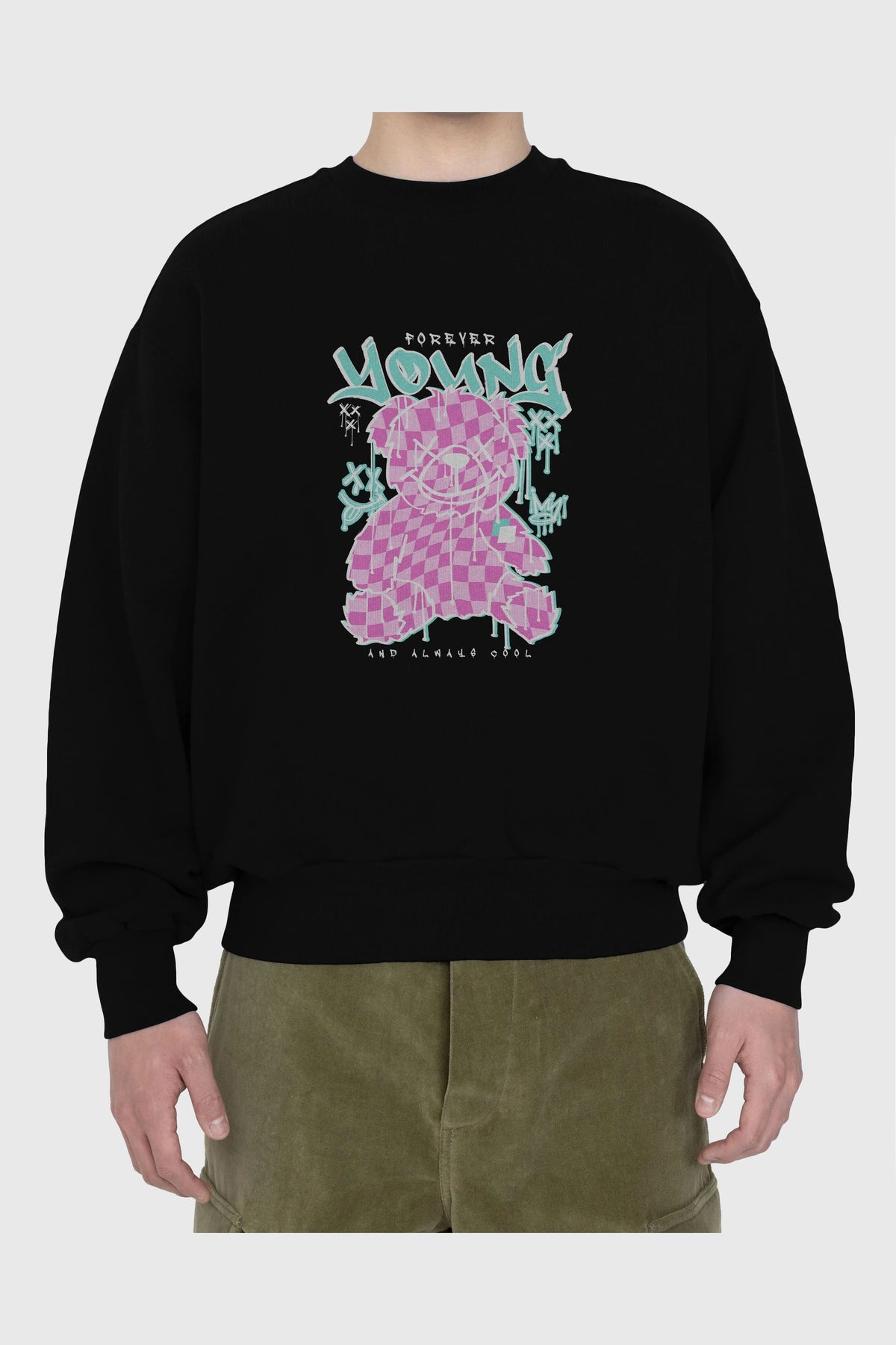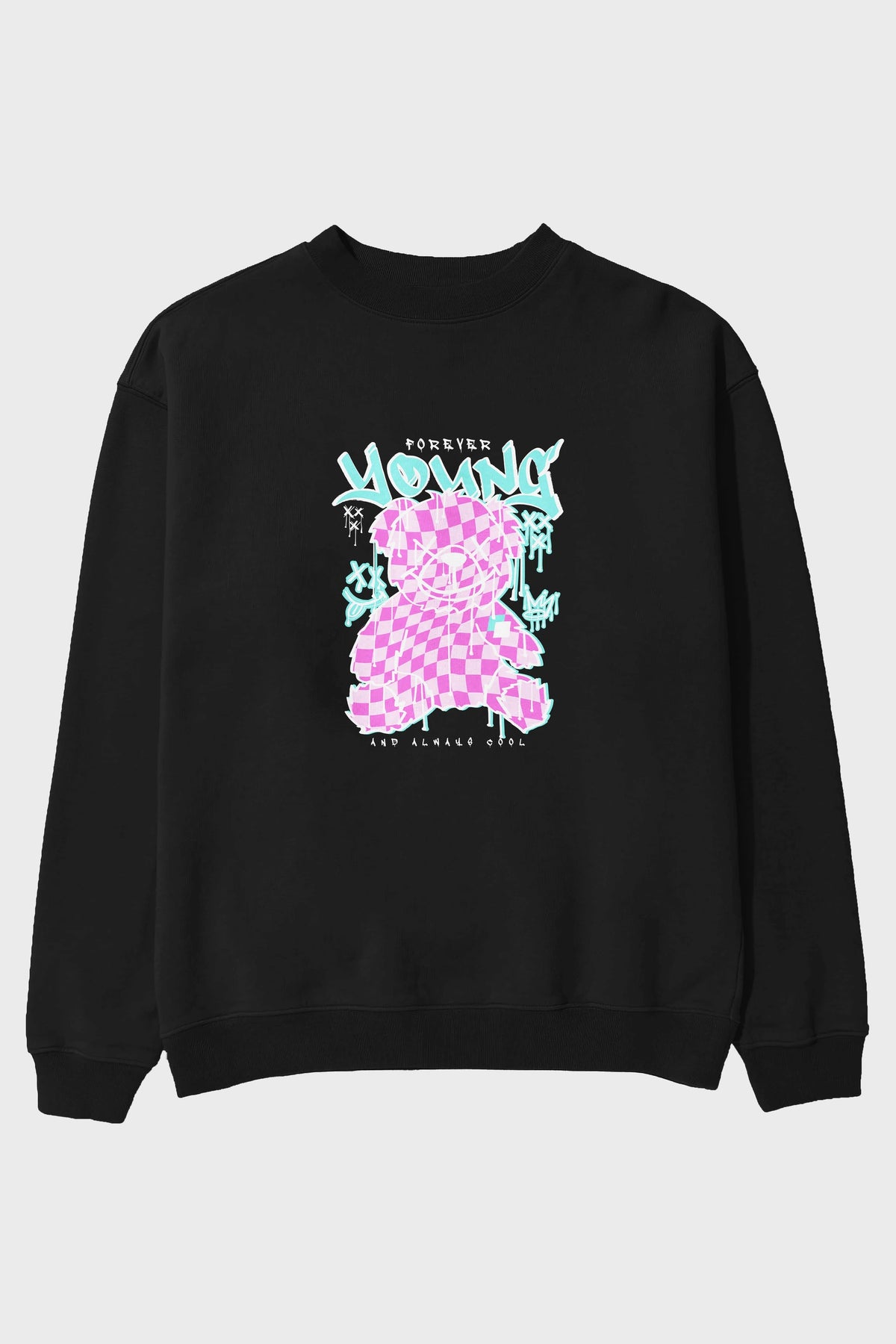 Young and Always Cool Bear Ön Baskılı Oversize Sweatshirt Erkek Kadın Unisex