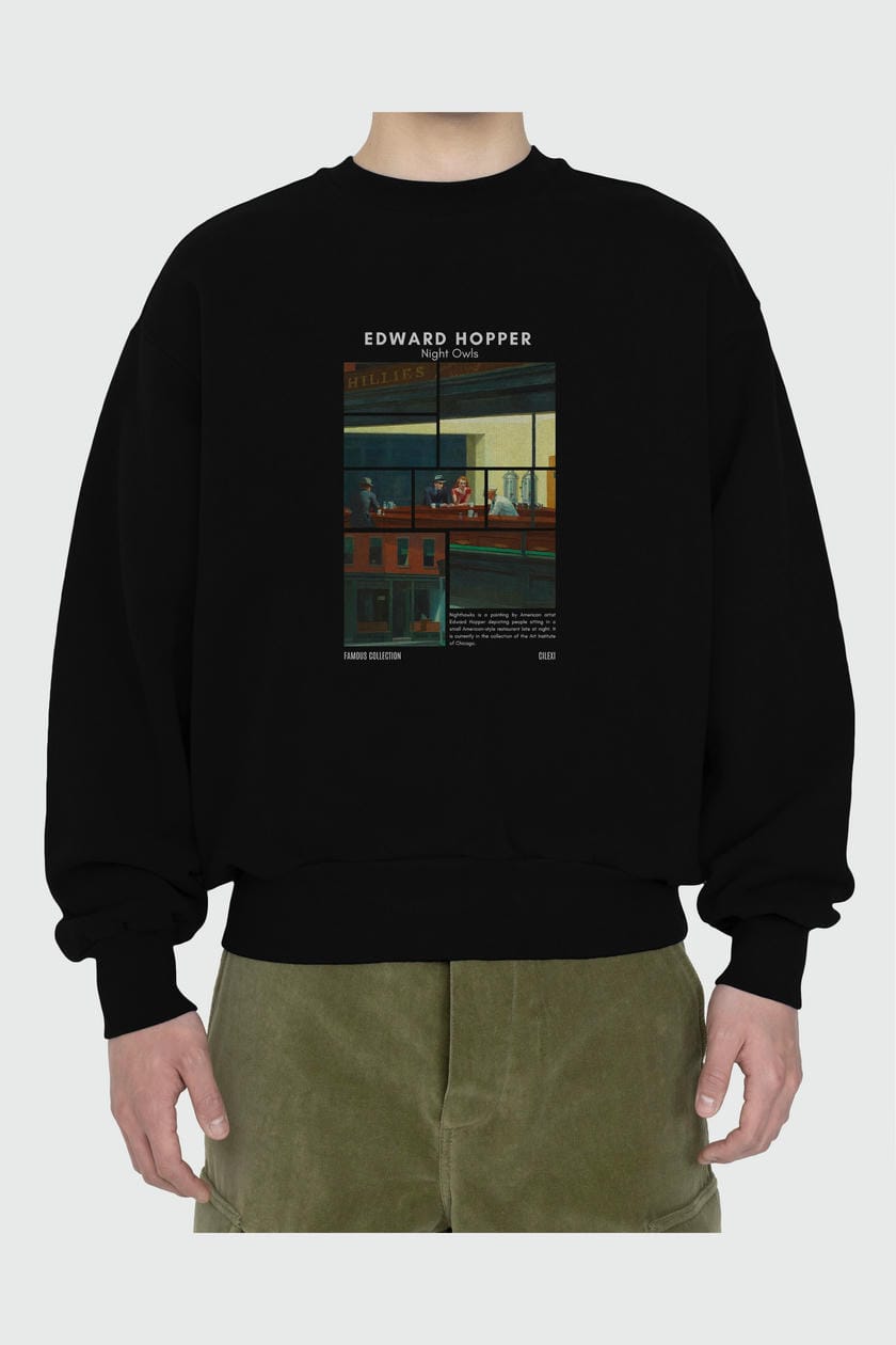 Edward Hopper Night Owls ön Baskılı Oversize Sweatshirt Erkek Kadın Unisex