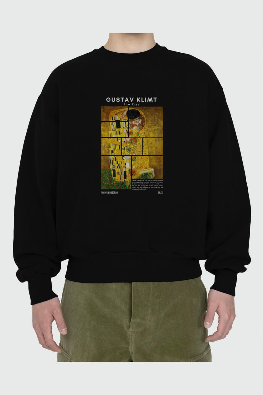 Gustav Klimt The Kiss ön Baskılı Oversize Sweatshirt Erkek Kadın Unisex