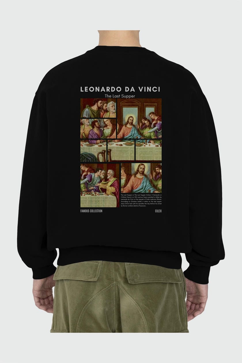 Leonardo Da Vinci Arka Baskılı Oversize Sweatshirt Erkek Kadın Unisex