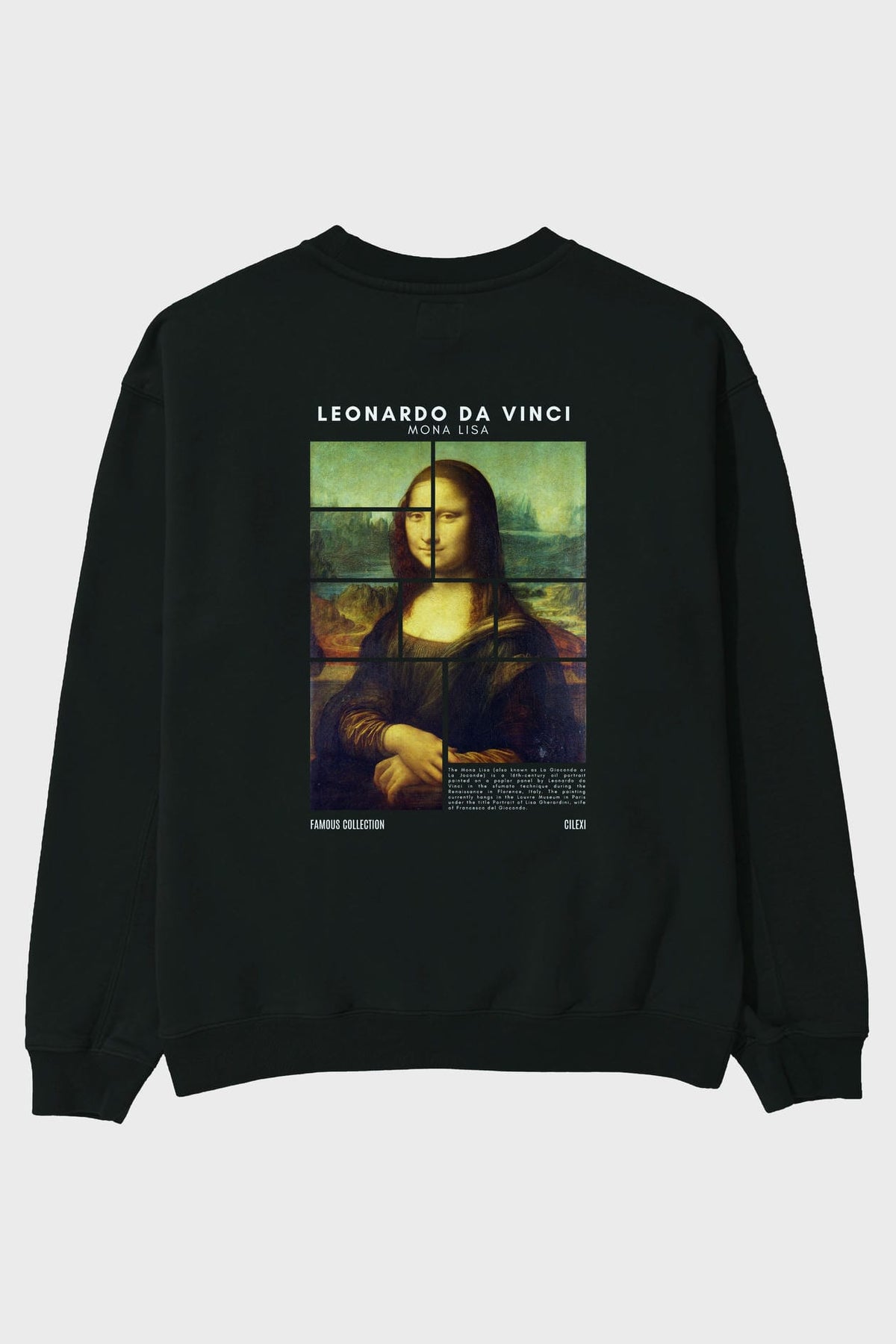 Leonardo Da Vinci Mona Lisa Arka Baskılı Oversize Sweatshirt Erkek Kadın Unisex