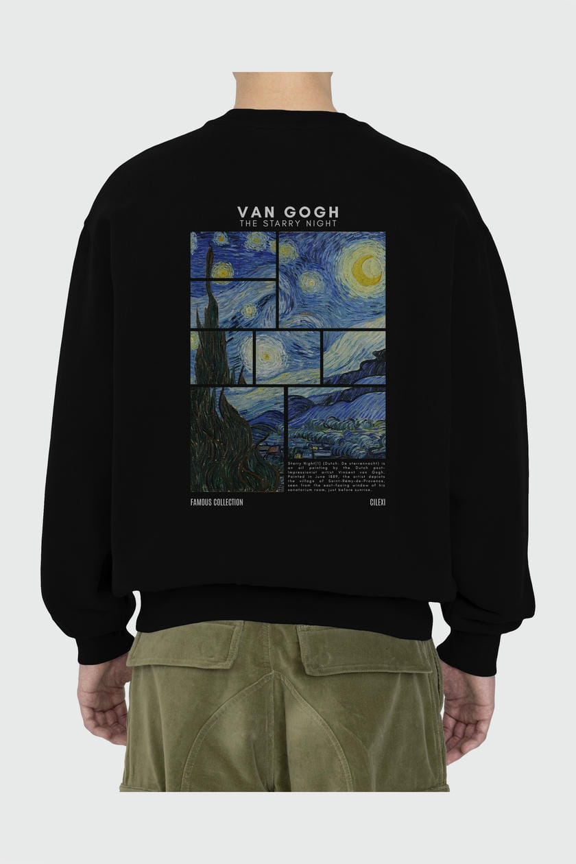 Van Gogh The Starry Night Arka Baskılı Oversize Sweatshirt Erkek Kadın Unisex