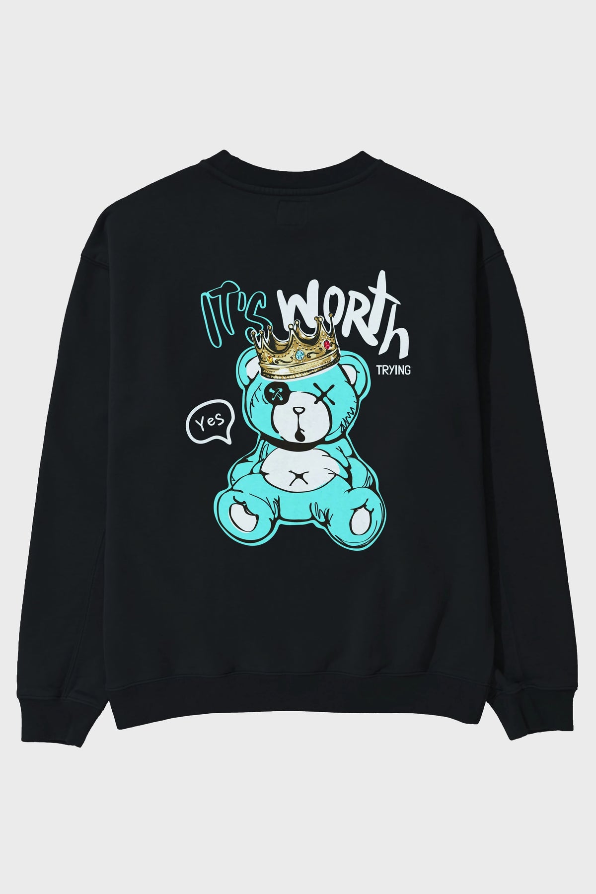its Worth Trying Bear Arka Baskılı Oversize Sweatshirt Erkek Kadın Unisex